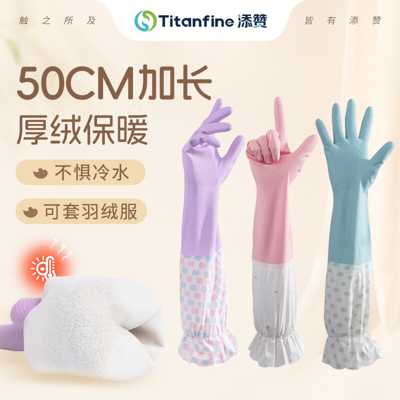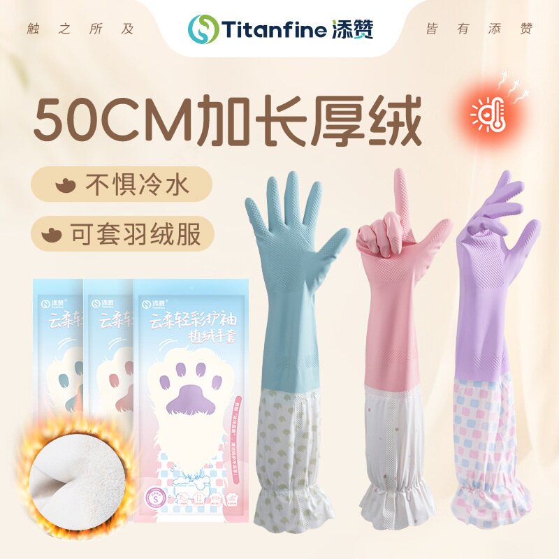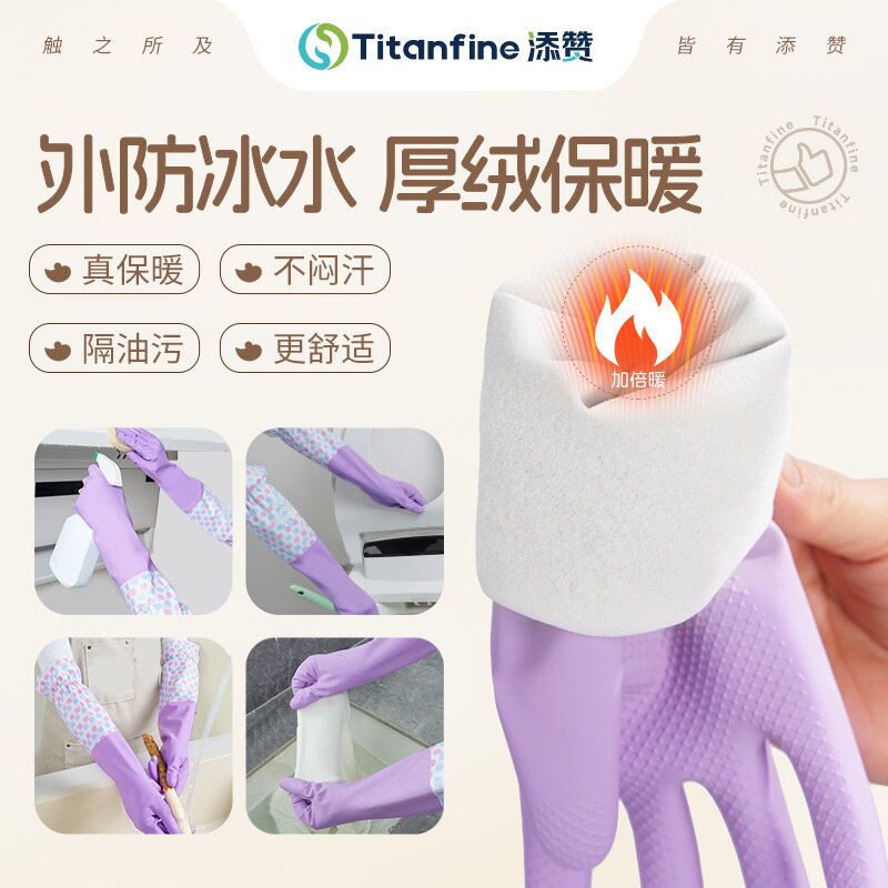 添赞Titanfine一体洗碗家务手套家用厨房洗衣服防水冬季植绒手套