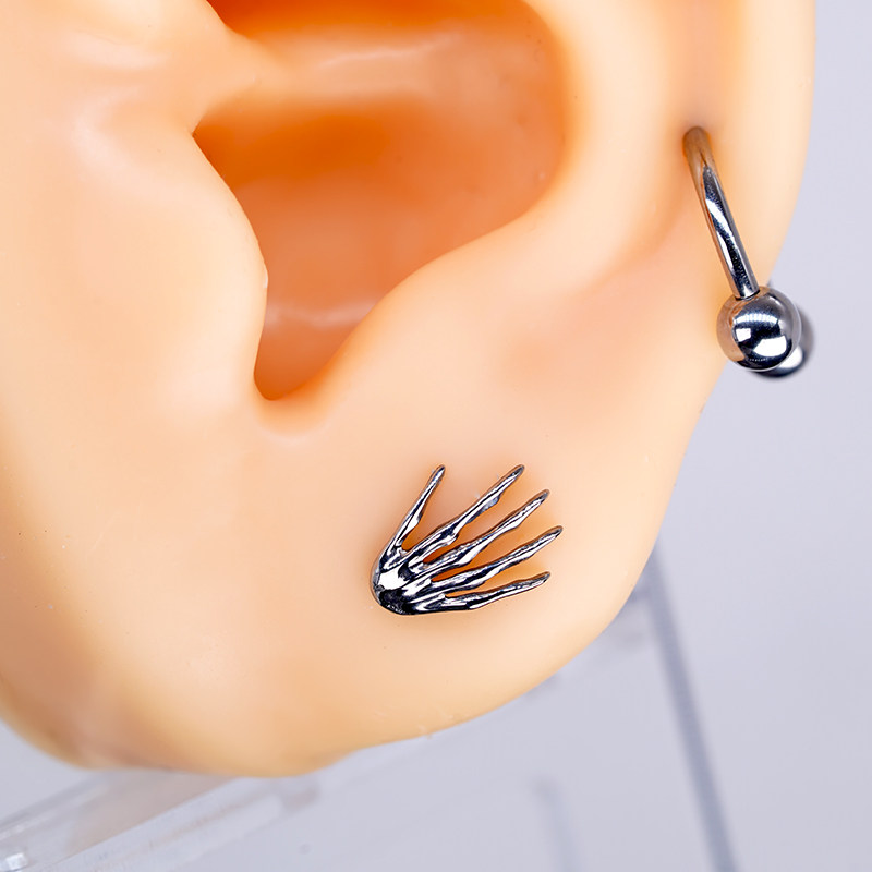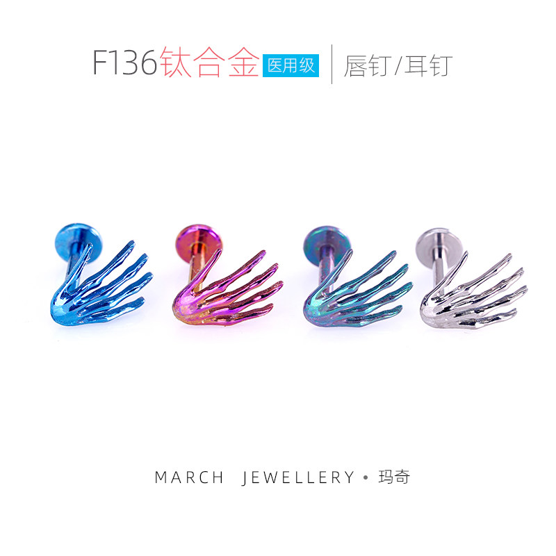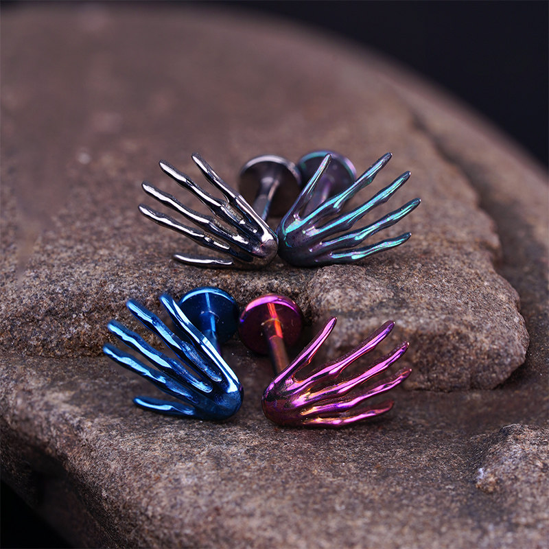 医用F136钛合金耳钉骷髅鬼手耳骨钉植入级防过敏养耳洞耳钉唇钉