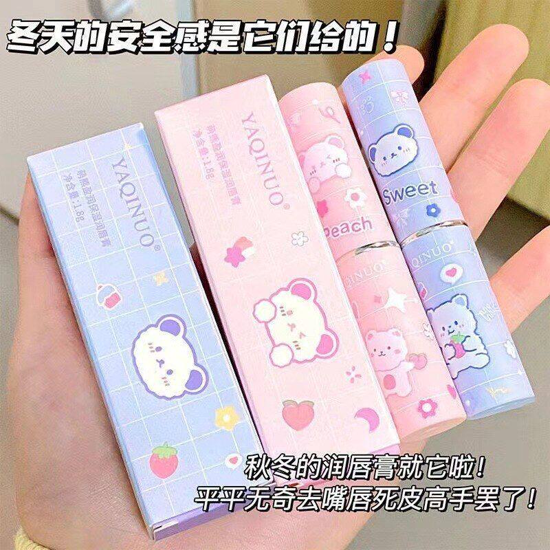 雅琪诺萌熊润唇膏补水保湿滋润修复淡化唇纹水蜜桃草莓味润唇膏