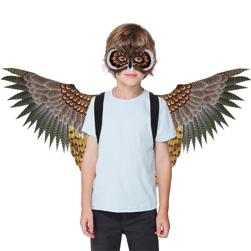 狂欢节新款儿童猫头鹰面具翅膀套装COSPLY派对舞台表演装饰品道具