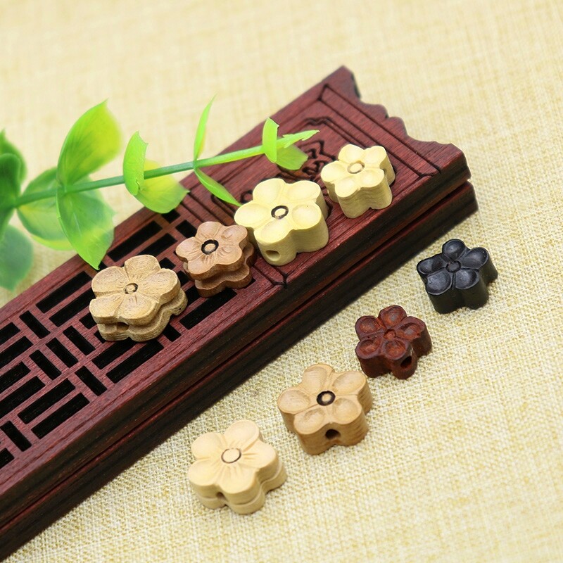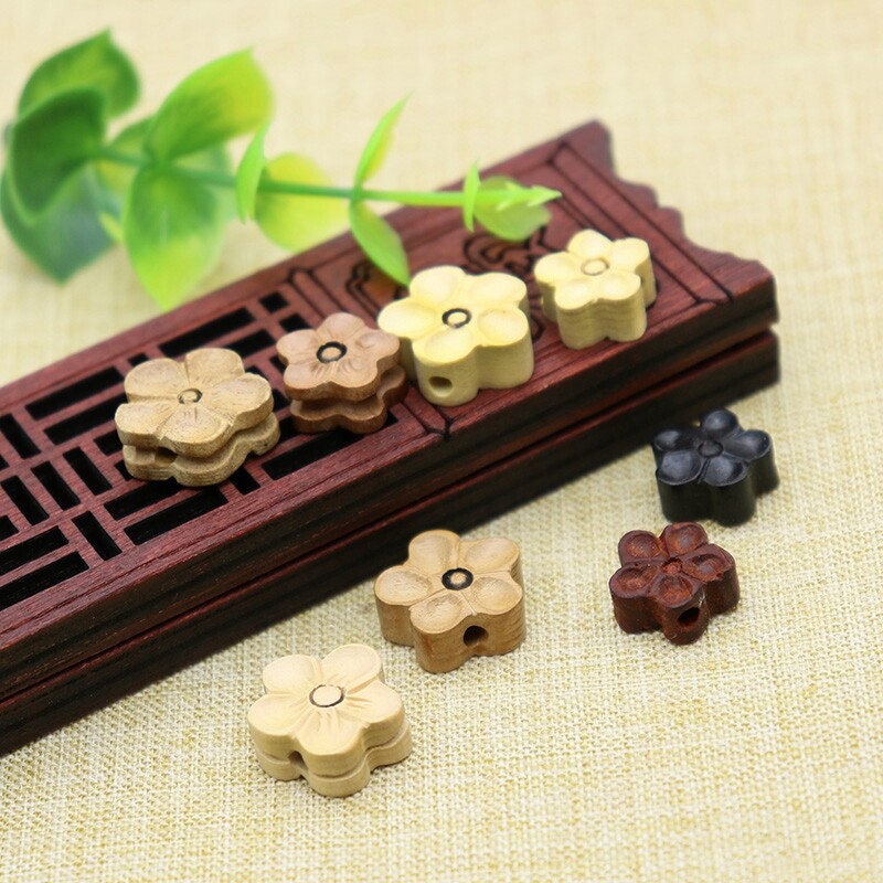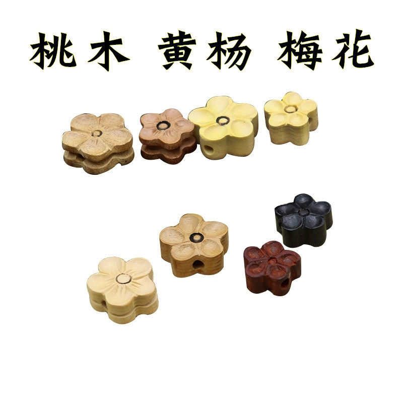 手工diy散珠吊坠材料雕刻文玩串儿童宝宝男编手链一朵花桃木梅花