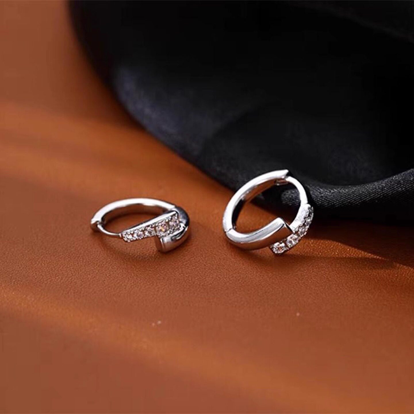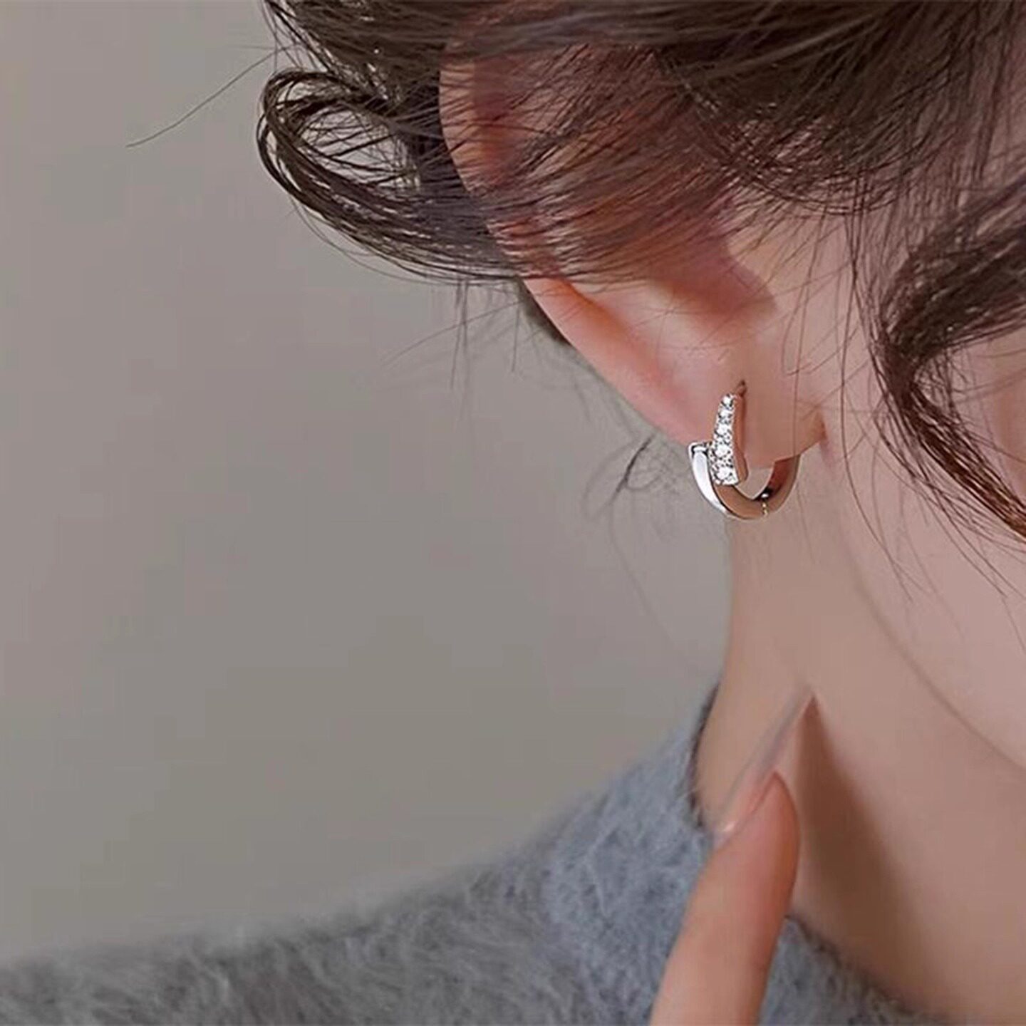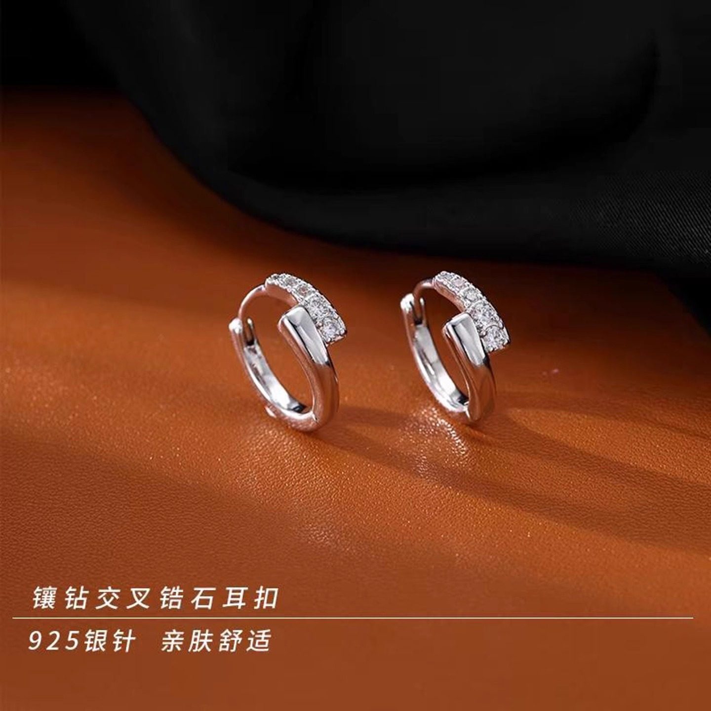 s925银针微镶圆圈耳扣法式精致时尚个性耳圈小众气质高级设计耳环