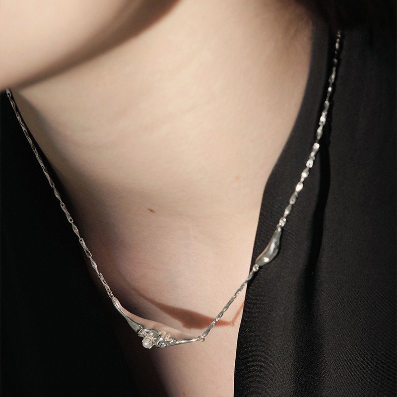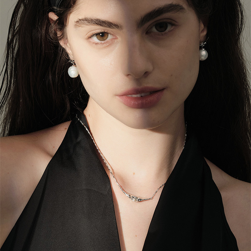 Unfolds浮舟天然淡水珍珠项链法式锁骨链女高级感