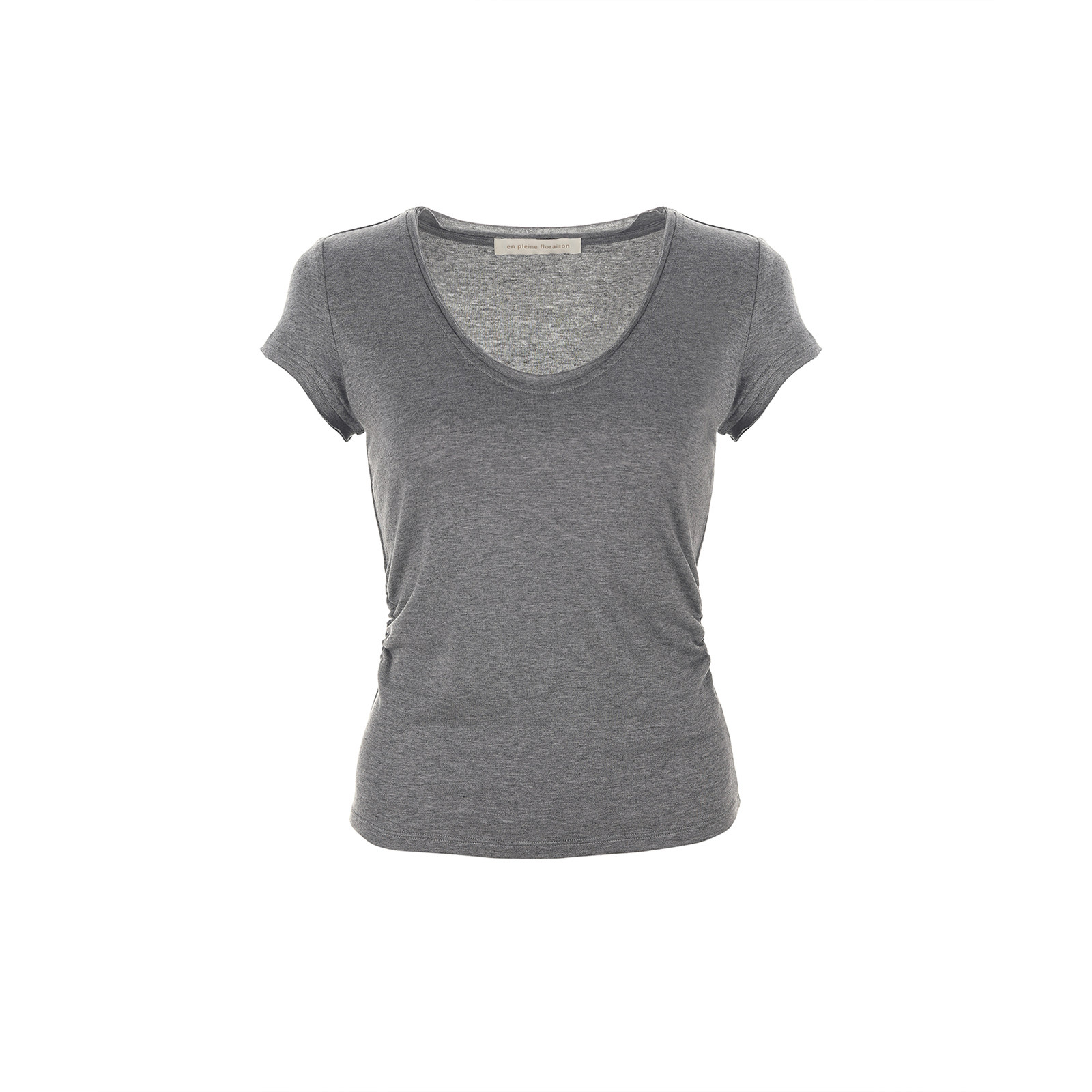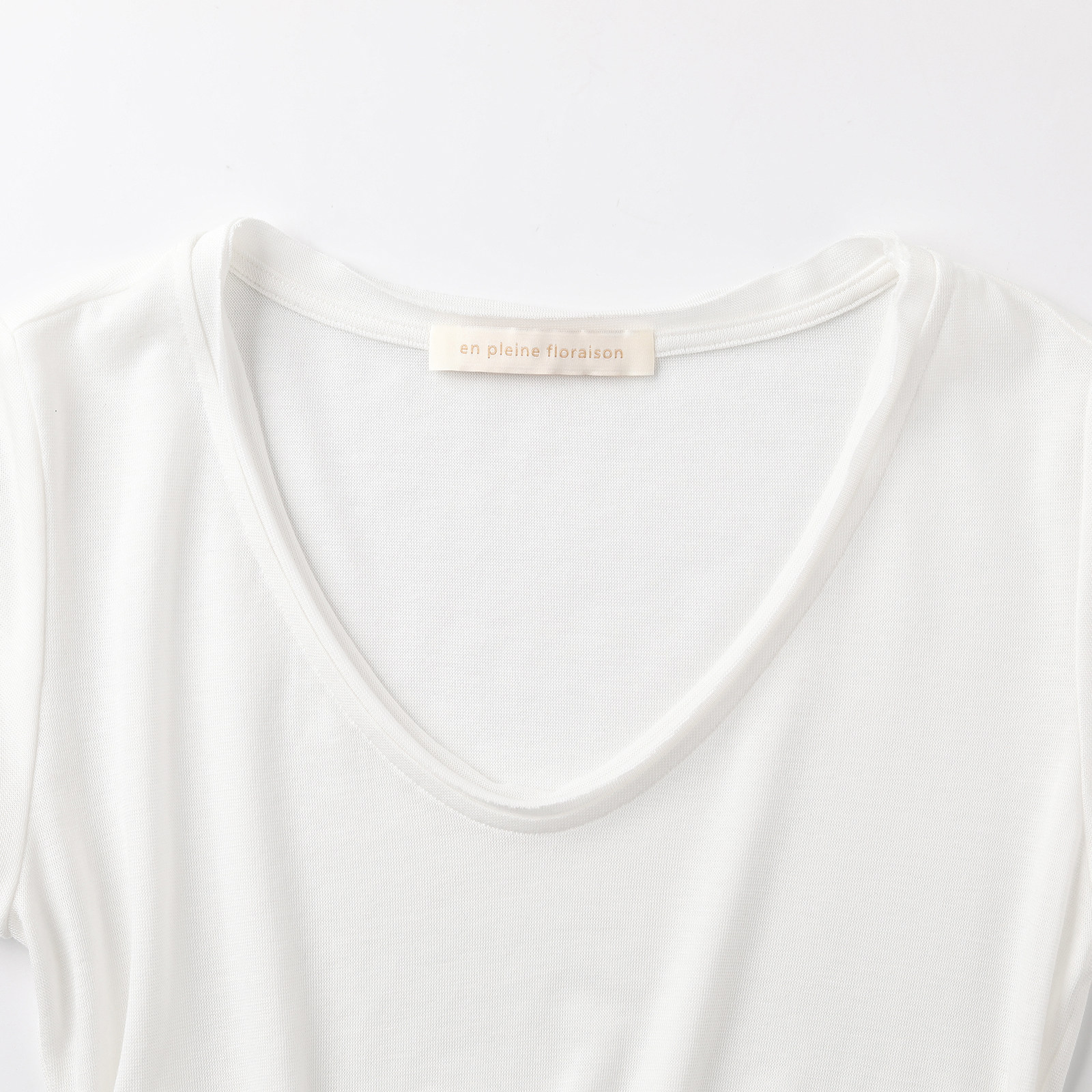 wana try天丝羊毛修身U领短袖T恤夏季新款正肩简约百搭通勤上衣女