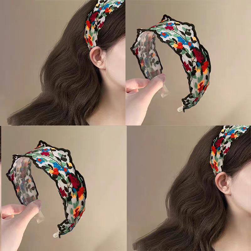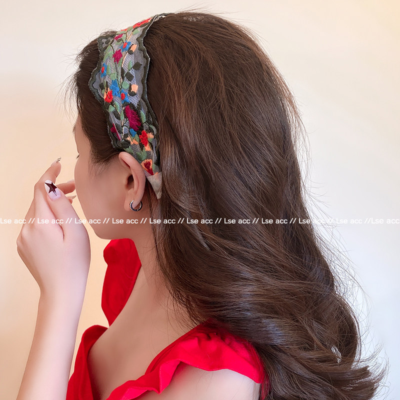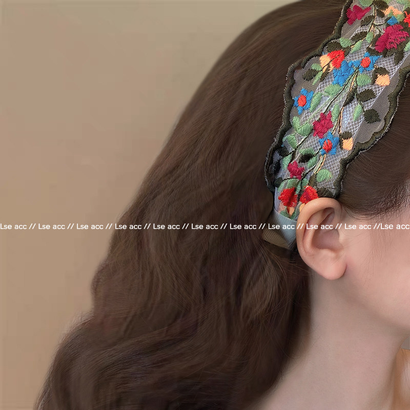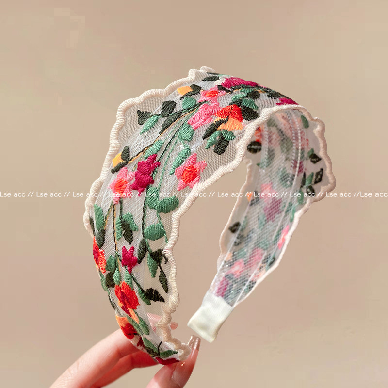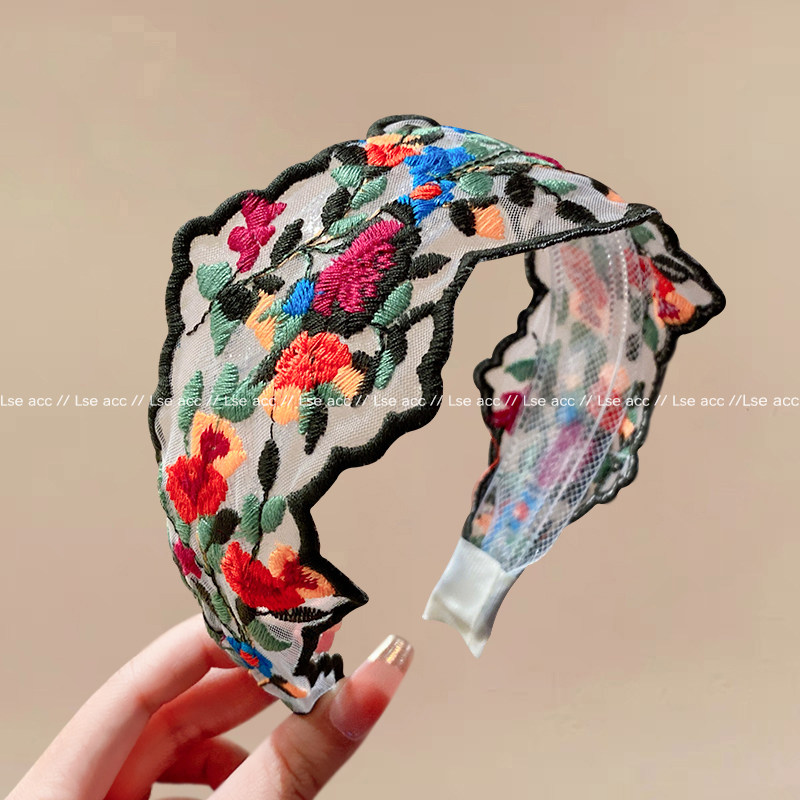 法式复古风花朵刺绣发箍女2025新款宽边发卡日常外戴发捆洗脸头箍