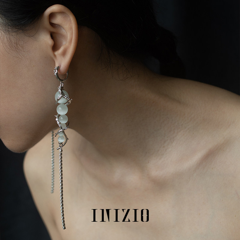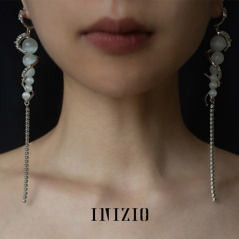 「赵露思许妍同款」INIZIO幻云之引云柱耳环猫眼石纯银耳圈长耳环