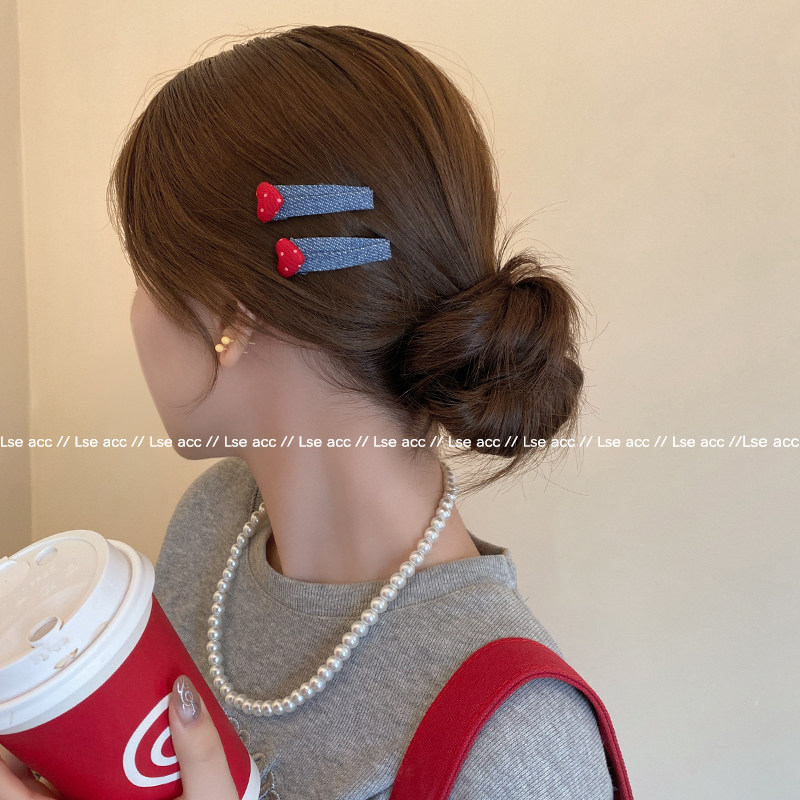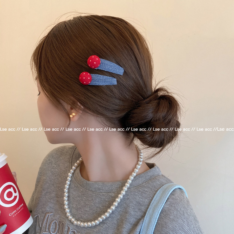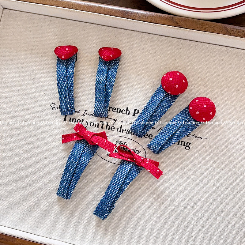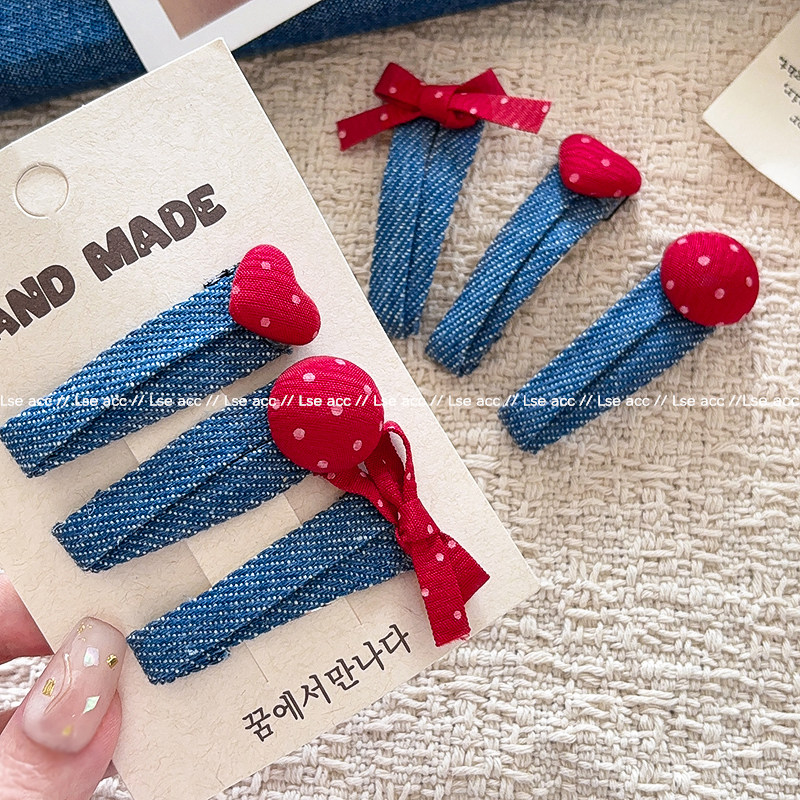 韩系牛仔发夹红色点点爱心BB夹边夹前额碎发夹小女孩可爱发卡头饰