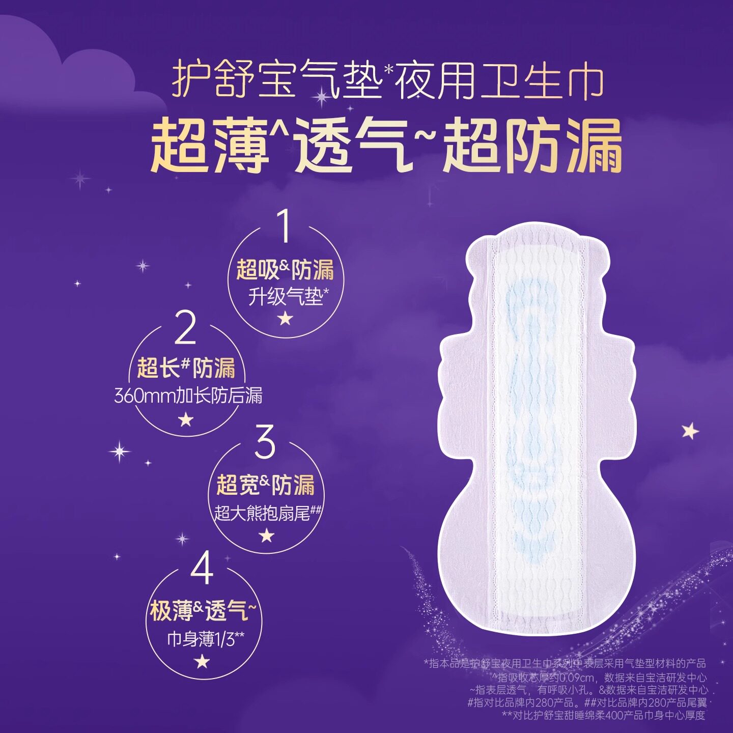 护舒宝夜用卫生巾考拉呼呼超长360/425mm姨妈超薄女产妇整箱批发