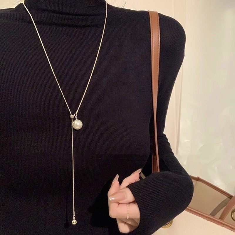 新款巴洛克珍珠钛钢抽拉项链女简约高级长款韩国博主同款锁骨链女