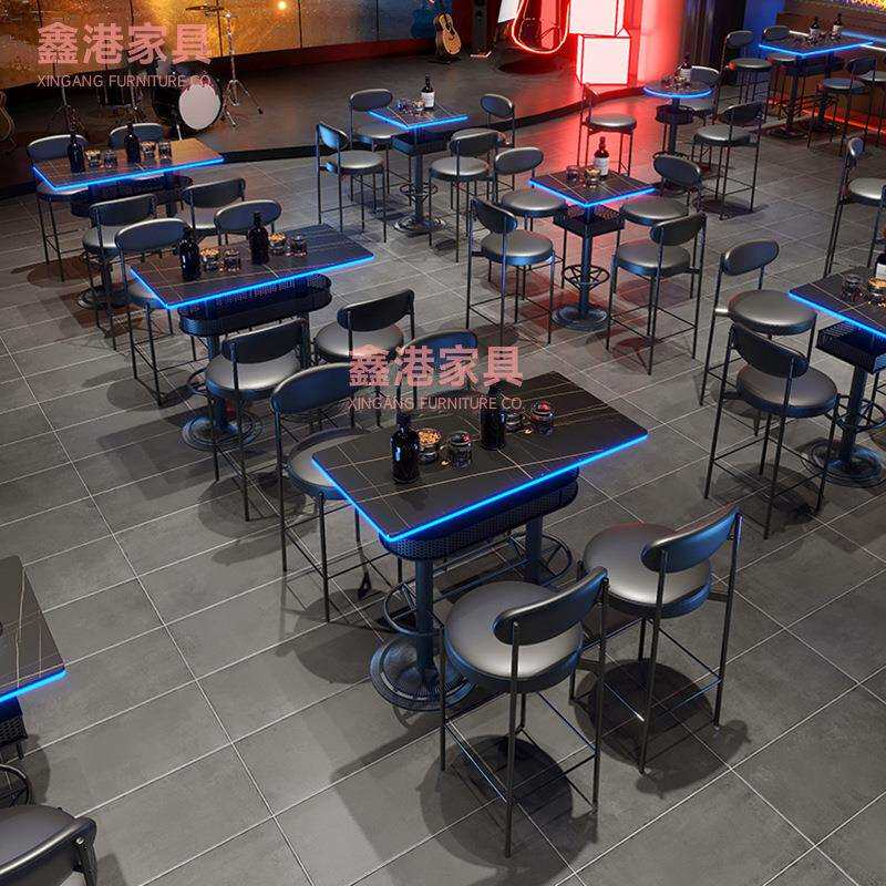 酒吧散台清吧高吧发光桌椅组合音乐酒馆卡座夜场转角沙发发光茶几
