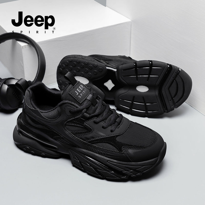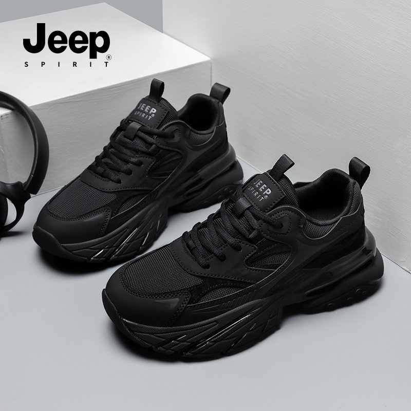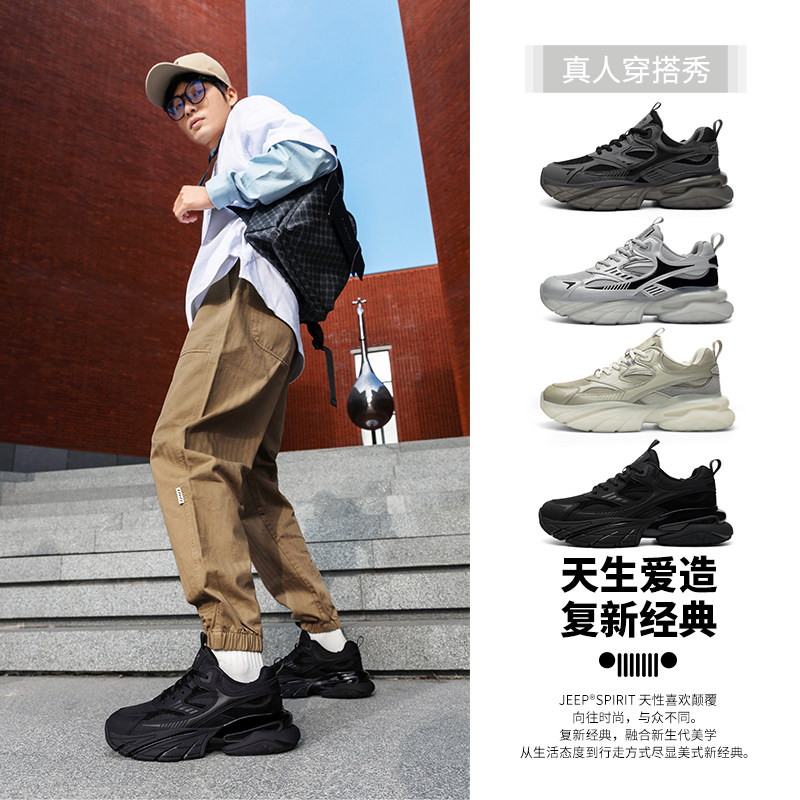 jeepspirit吉普男鞋2026春季新款厚底黑武士黑色休闲运动老爹鞋男