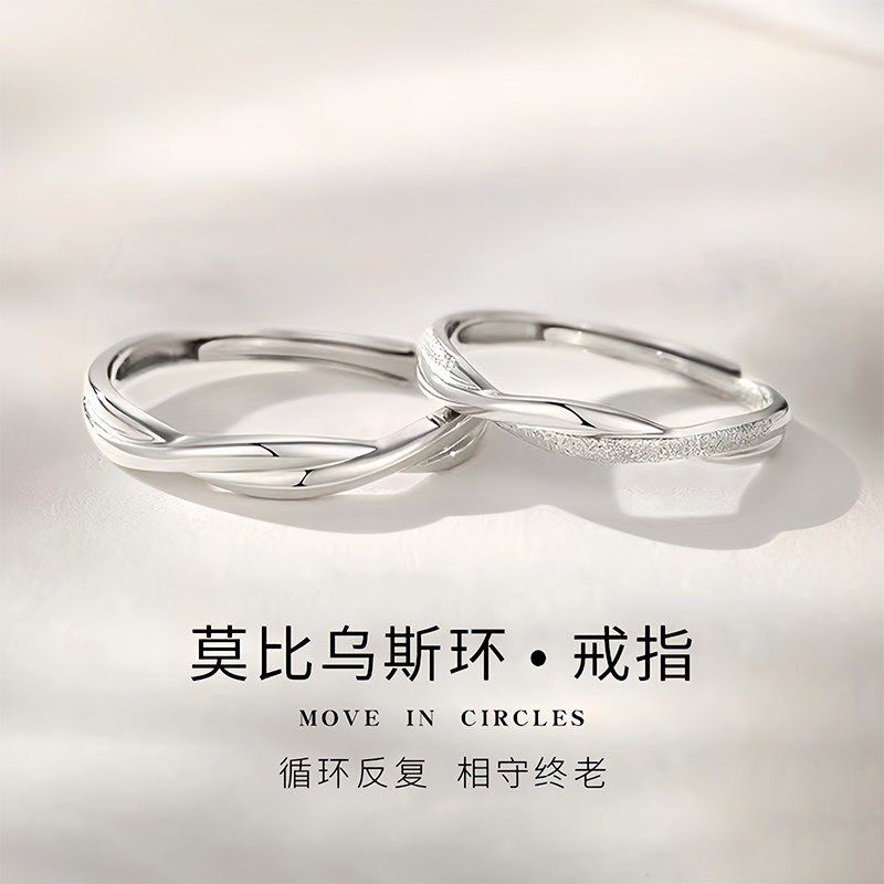 SWAG999纯银莫比乌斯环情侣对戒素圈戒指男款尾戒送男女友礼物