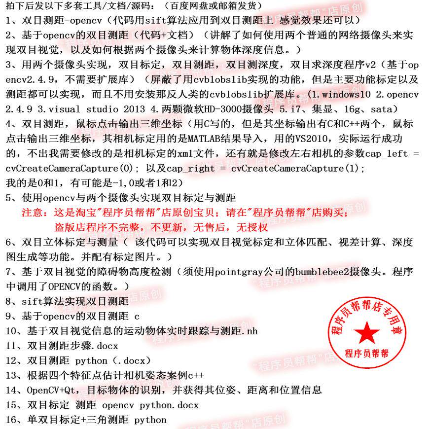08¥ CZ005 wVBD5hEWLaN¥ https://m.tb.cn/h.iKOcjx8 双目测距测量源代码两个摄像头opencv C sift --------------------- 双目测距测量源代码两个摄像头opencv C sift 【原售价】30元 【现售价】30元 【推荐理由】