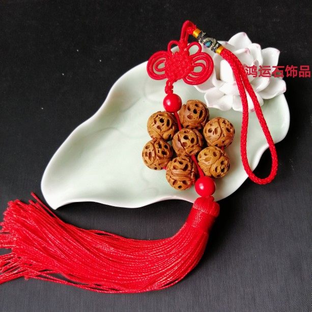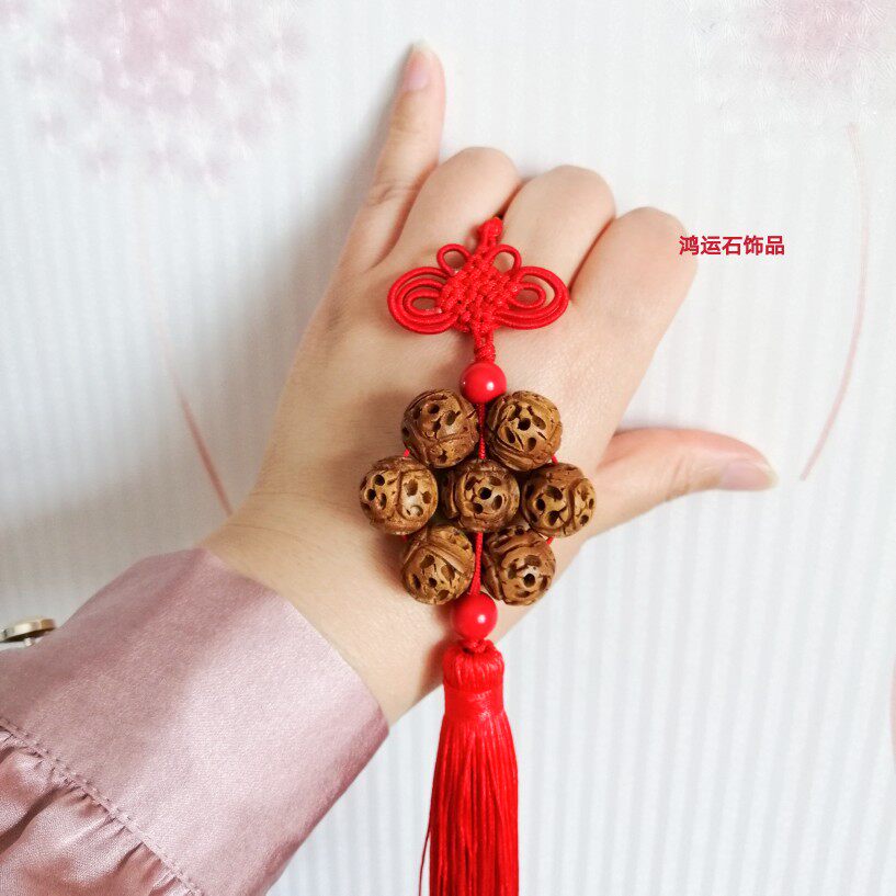 路路畅通汽车挂件野生桃核七星阵吊坠车载保平安饰品朱砂男女