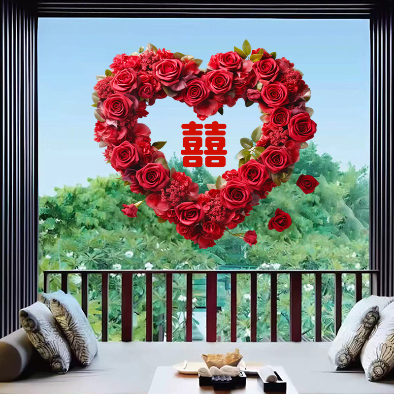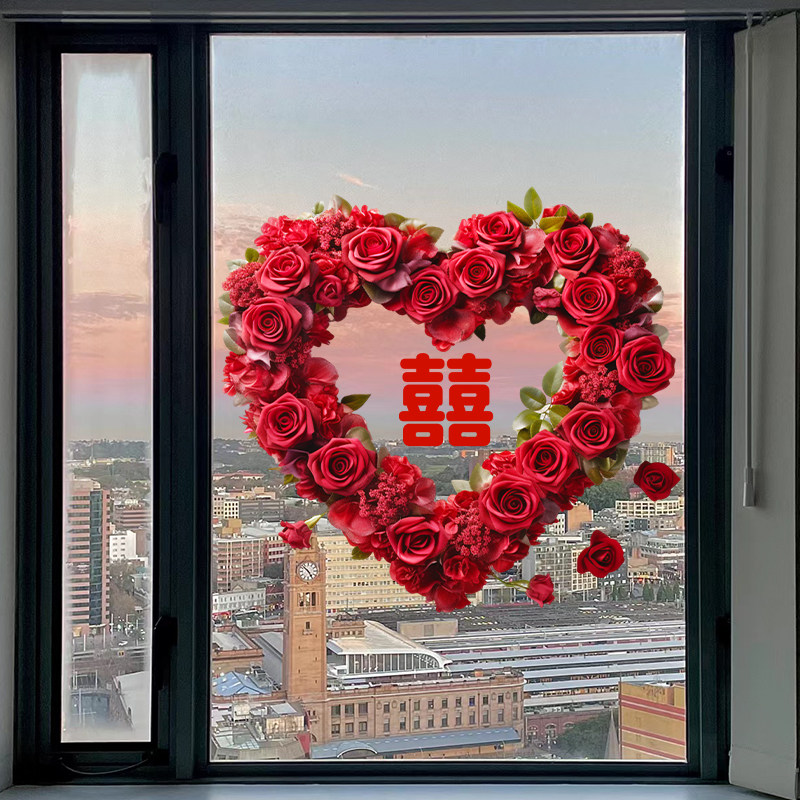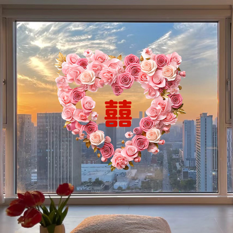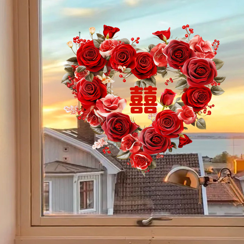 繁花似锦玫瑰花囍字贴2026新款婚房装饰玻璃门贴窗贴结婚专用喜字