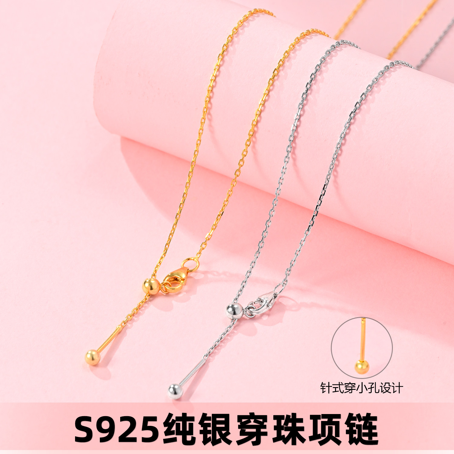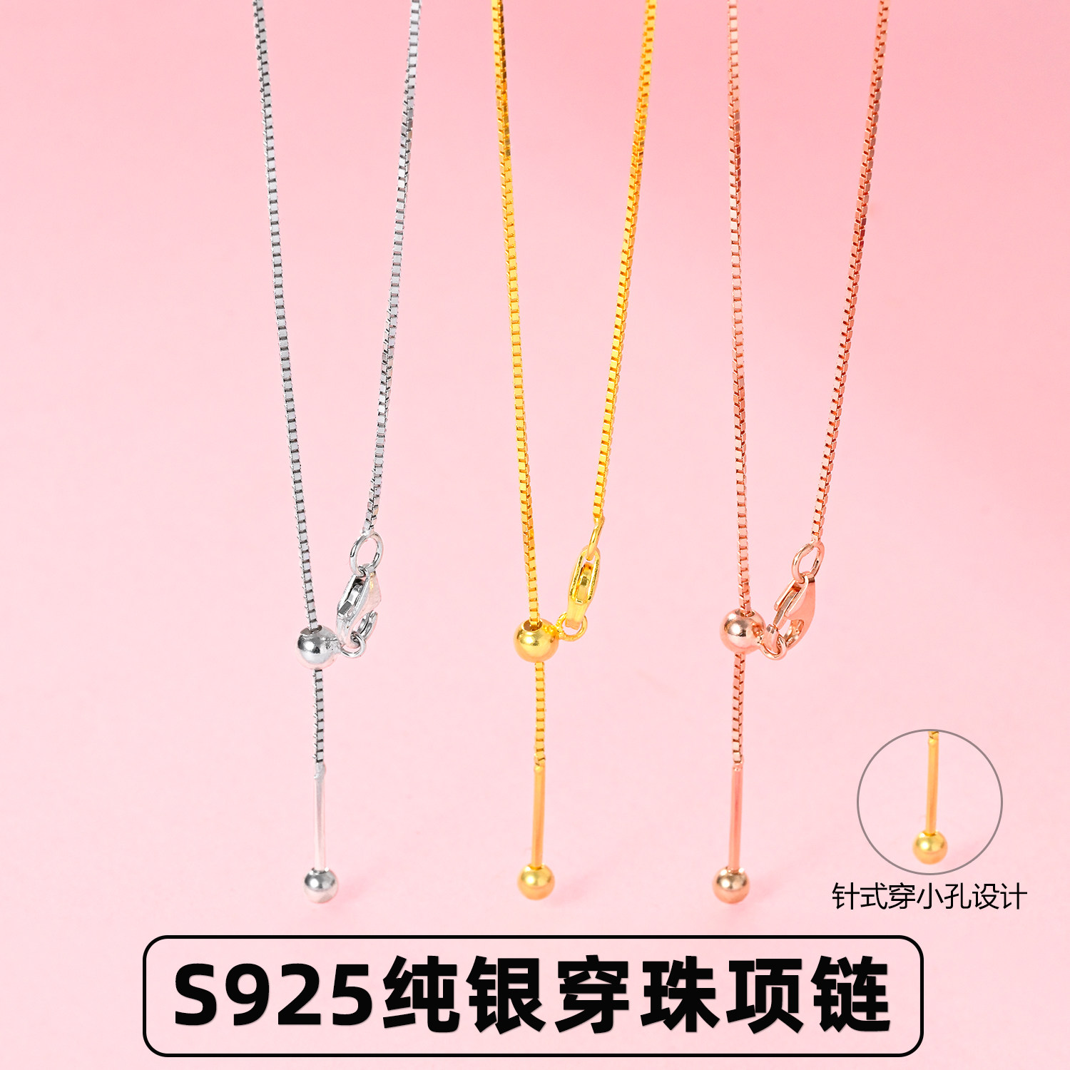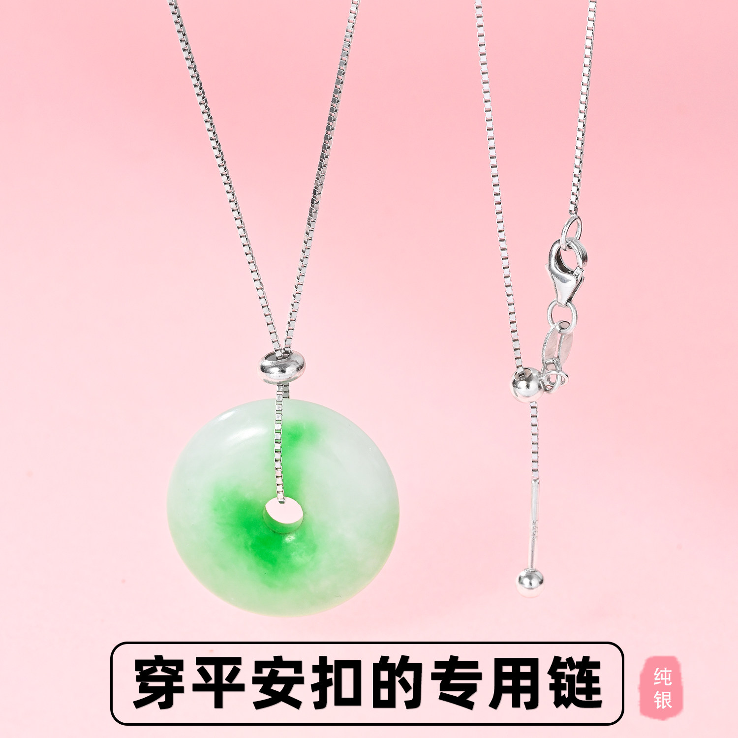 万能链针式项链S925纯银毛衣链可调节可穿吊坠平安扣银链子锁骨链