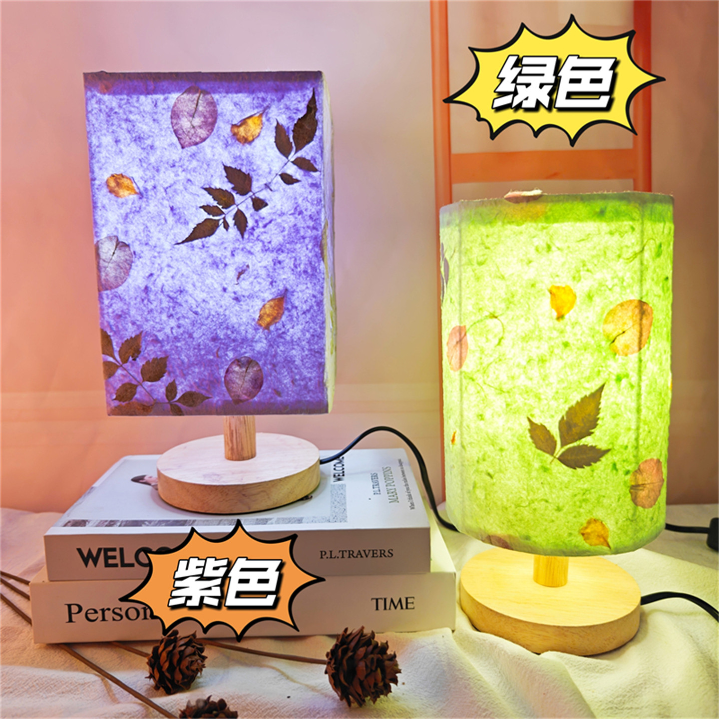 亲子活动手工花草纸台灯diy材料包压花灯小夜灯酒吧卧室书房押花