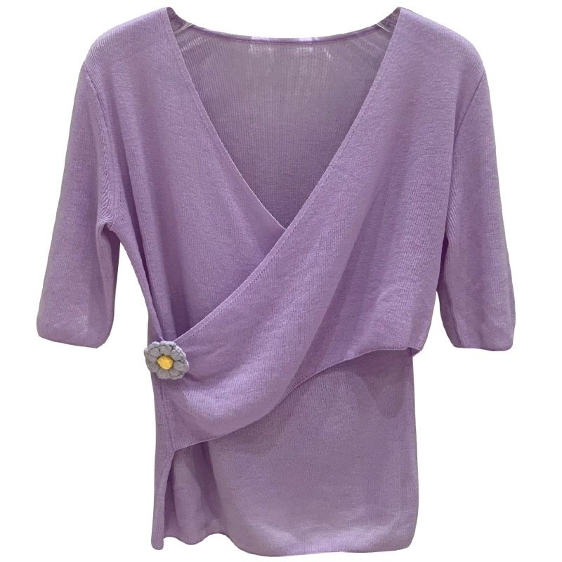Masion Wester春夏糖果色花朵装饰水溶羊毛衫V领短袖上衣