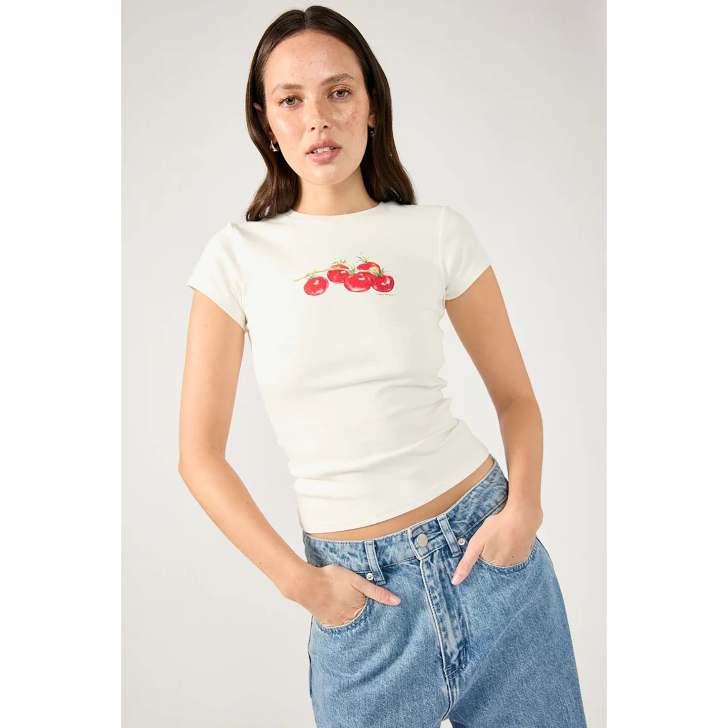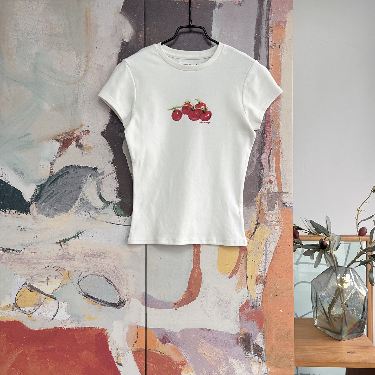 外贸原单Per*fect Stranger番茄印花圆领修身短袖T恤短款B1 3166