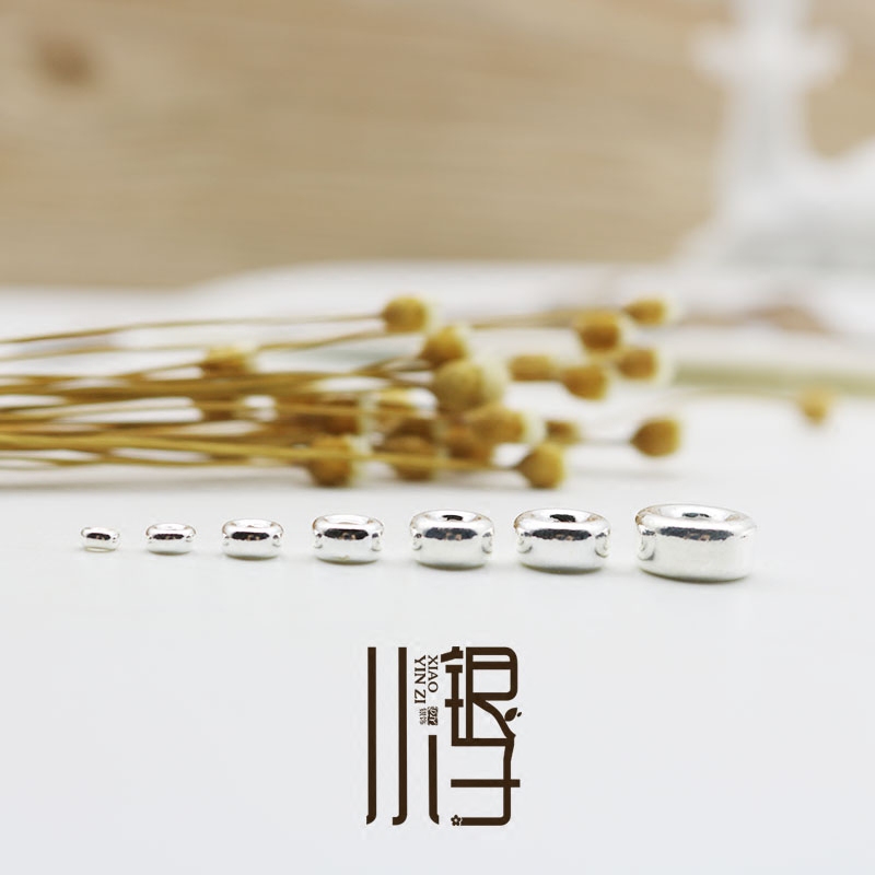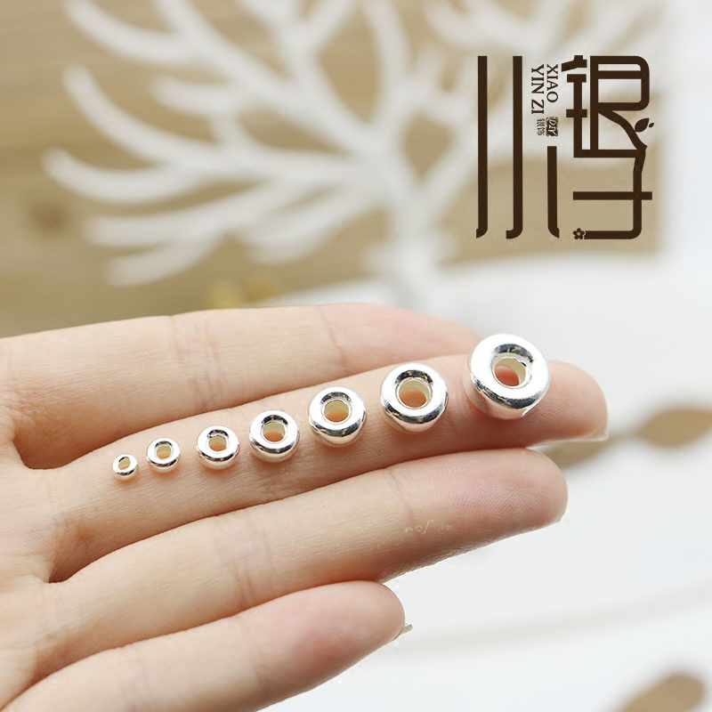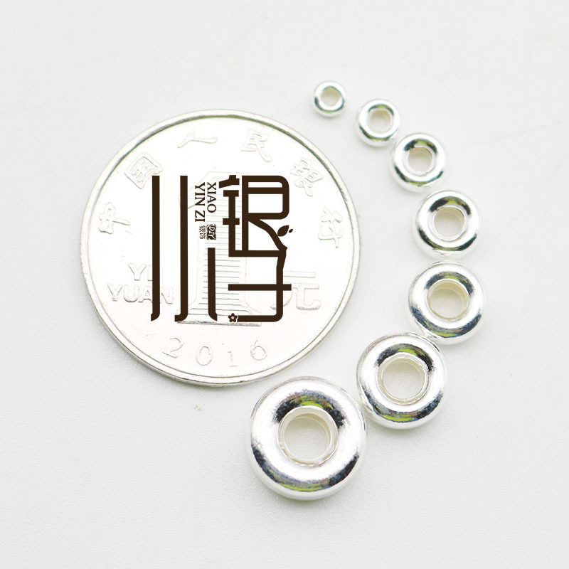 S925纯银素银 水泡珠车轮珠 水晶手链佛珠扣子扁珠隔珠编绳散珠