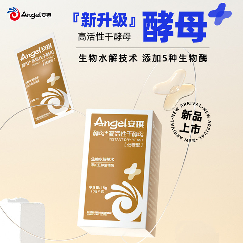 安琪酵母+高活性干酵母粉家用包子馒头低糖面包发面发酵粉6g*8袋