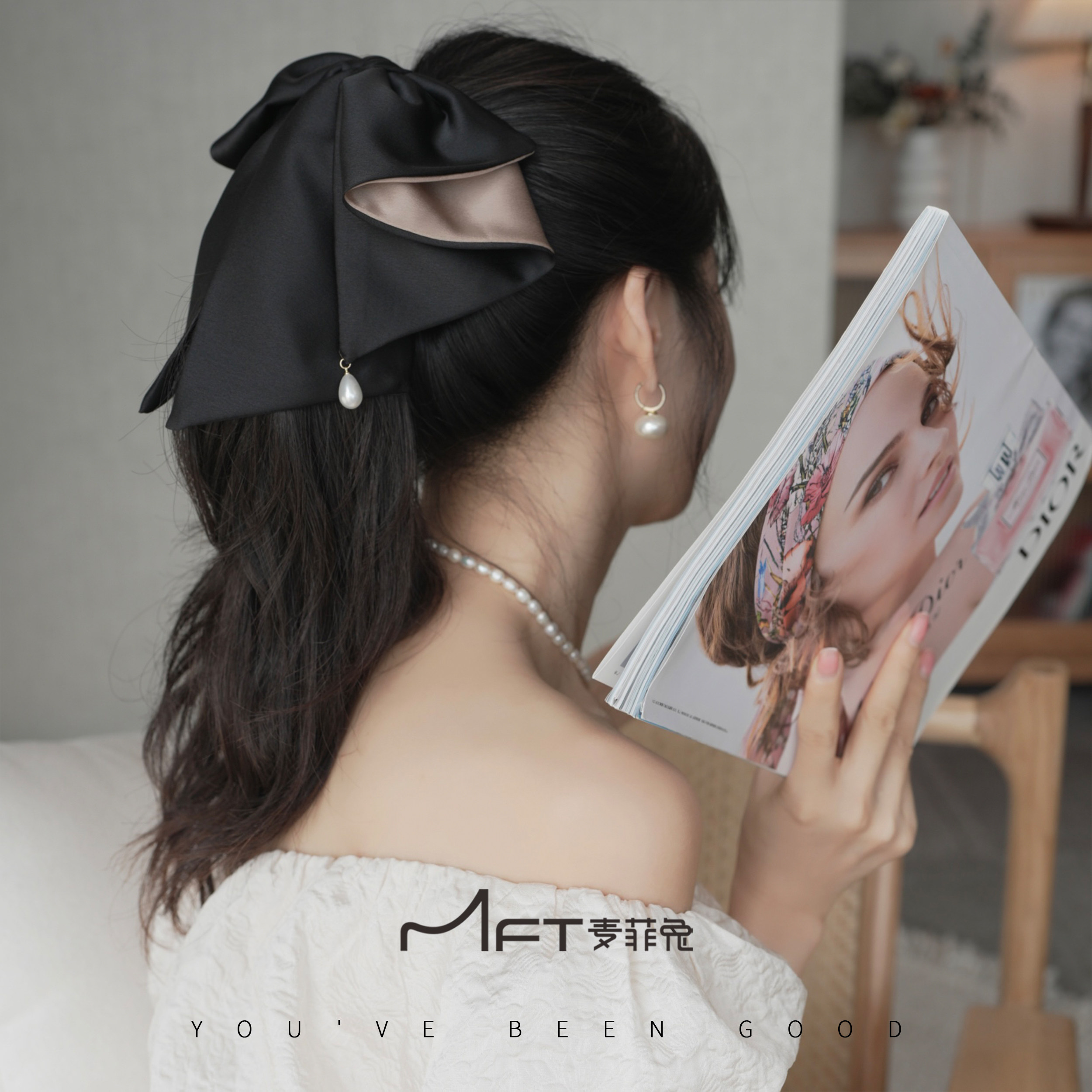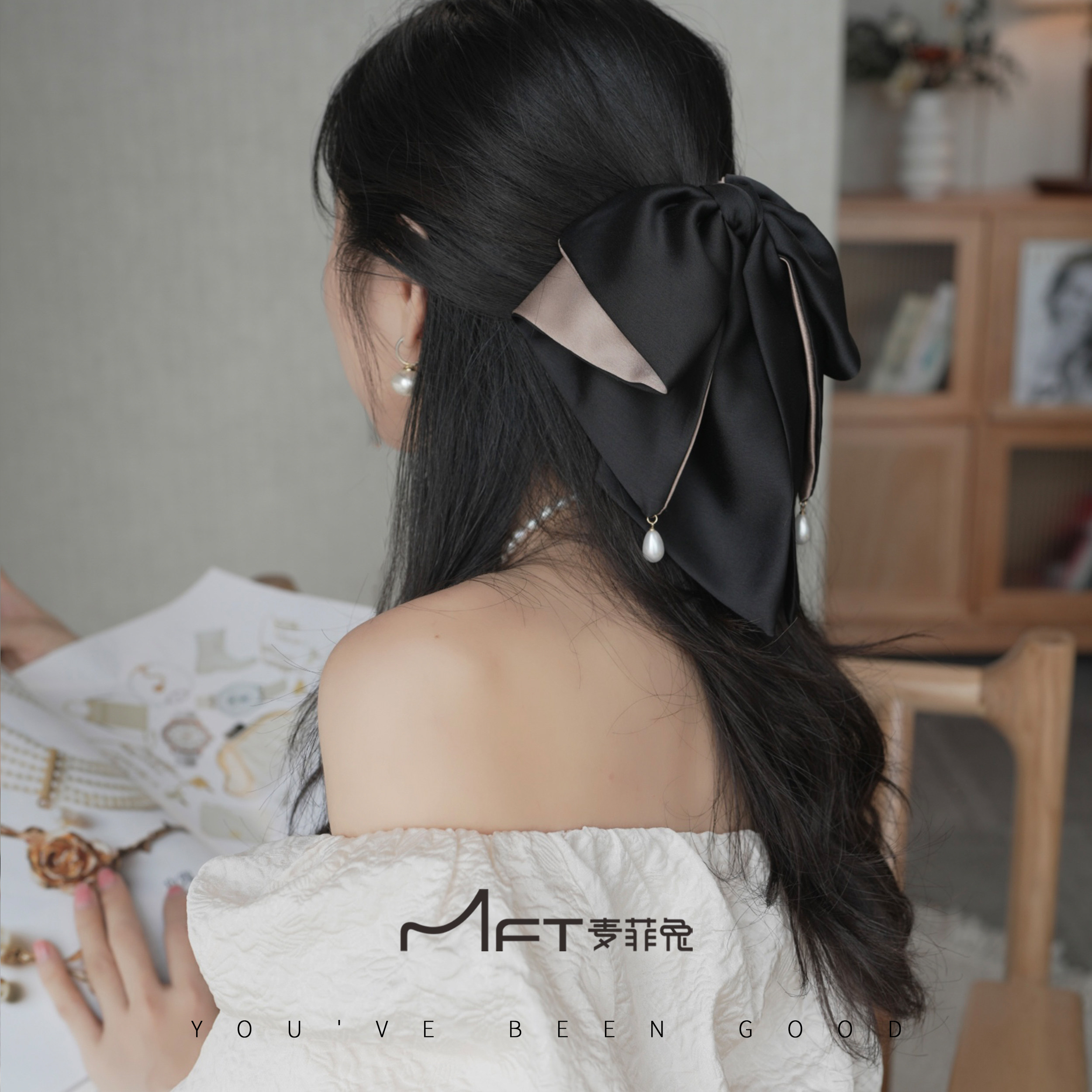 兰亭序抓夹小众高级感双色拼接缎面蝴蝶结懒人抓夹简约发饰头饰女