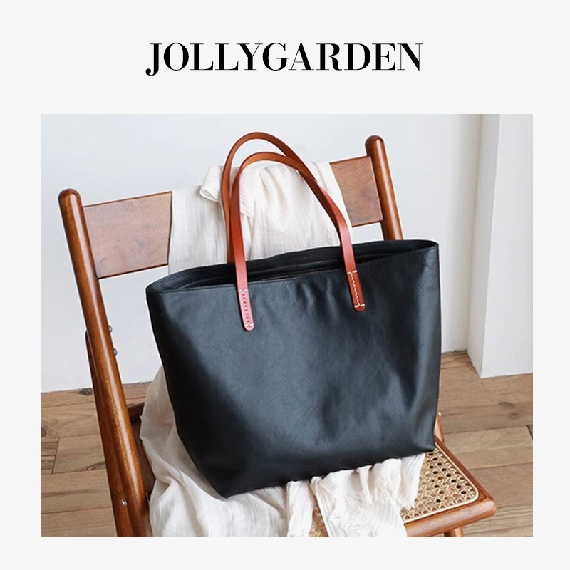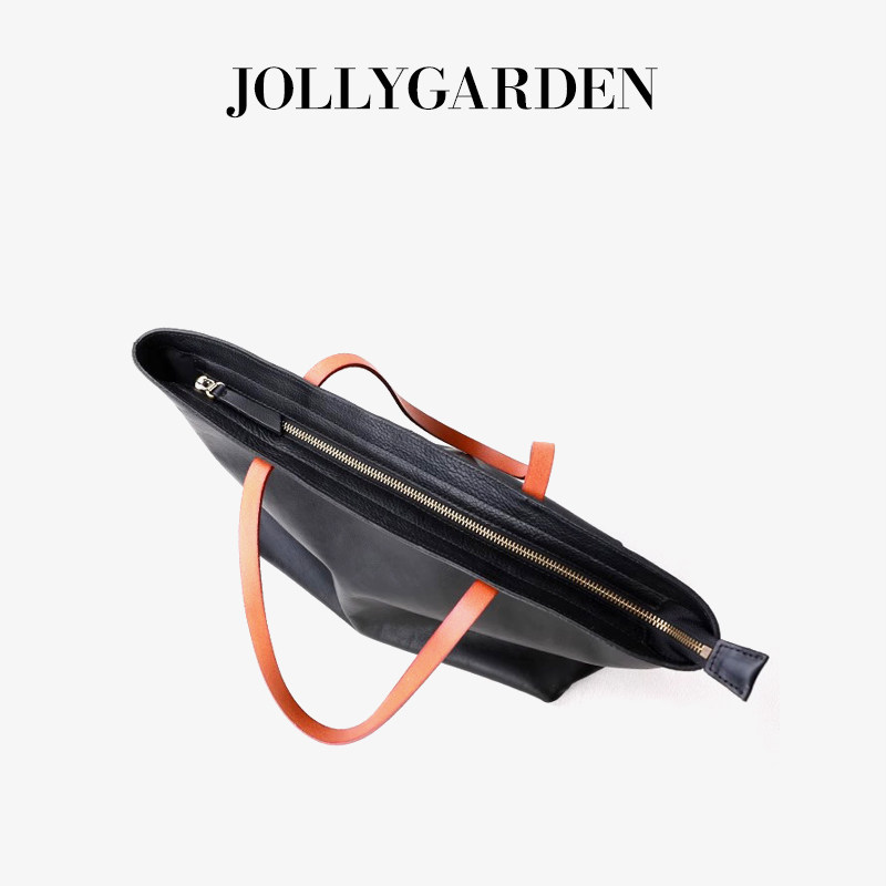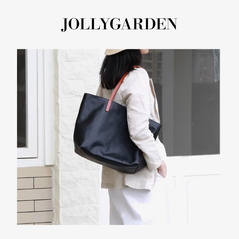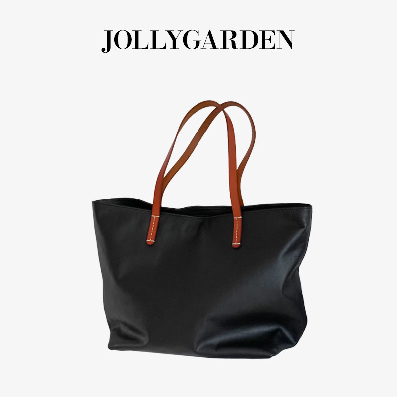 JOLLY GARDEN【沐遥】新款黑色撞色大托特包通勤大容量手提单肩包