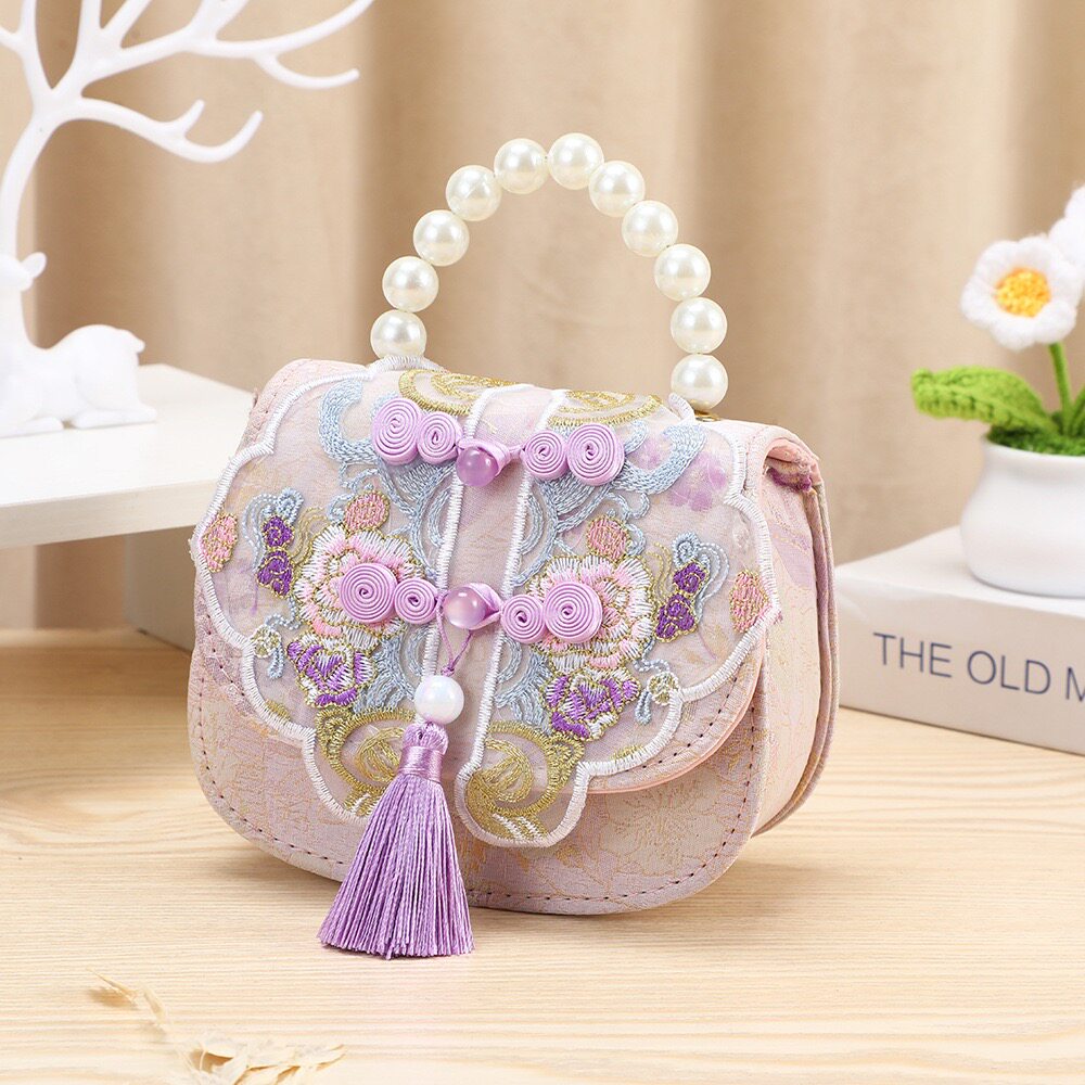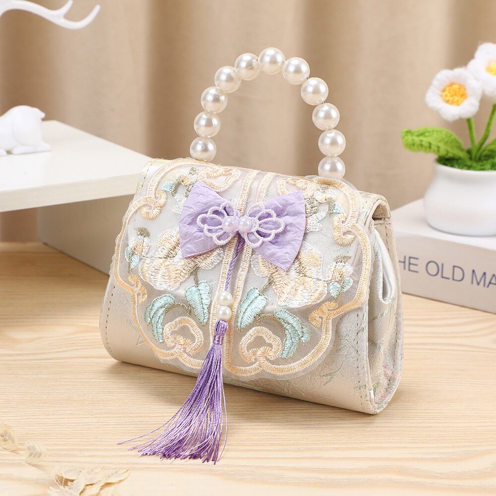 儿童包包中国风蝴蝶结流苏女童挎包小公主珍珠手提收纳零钱包