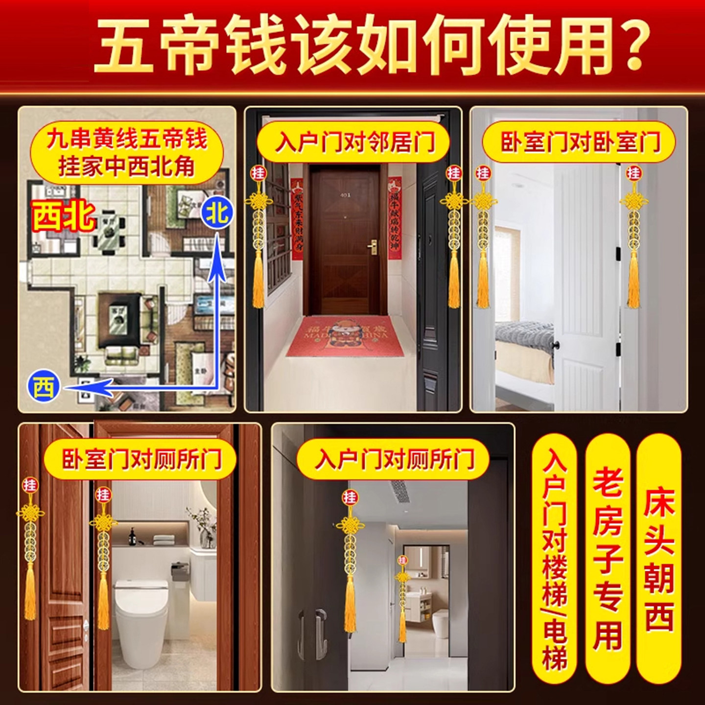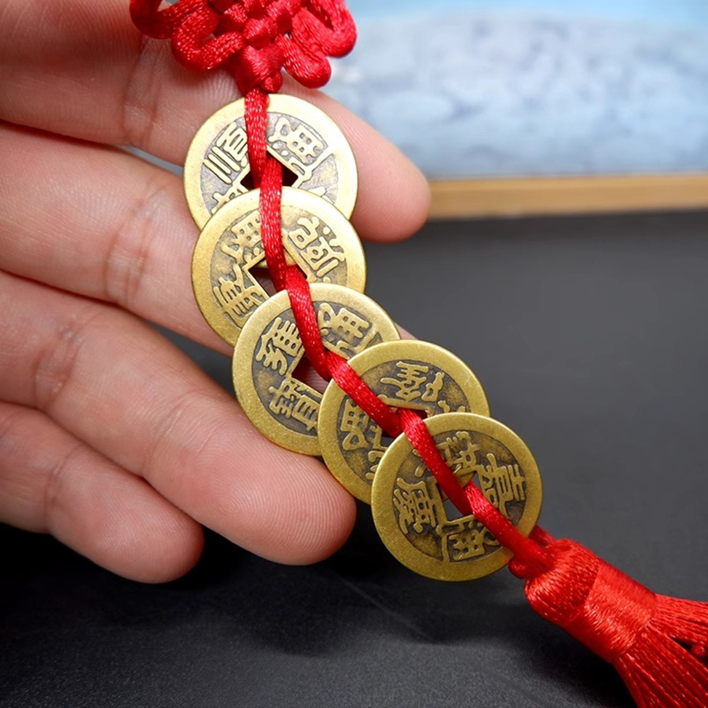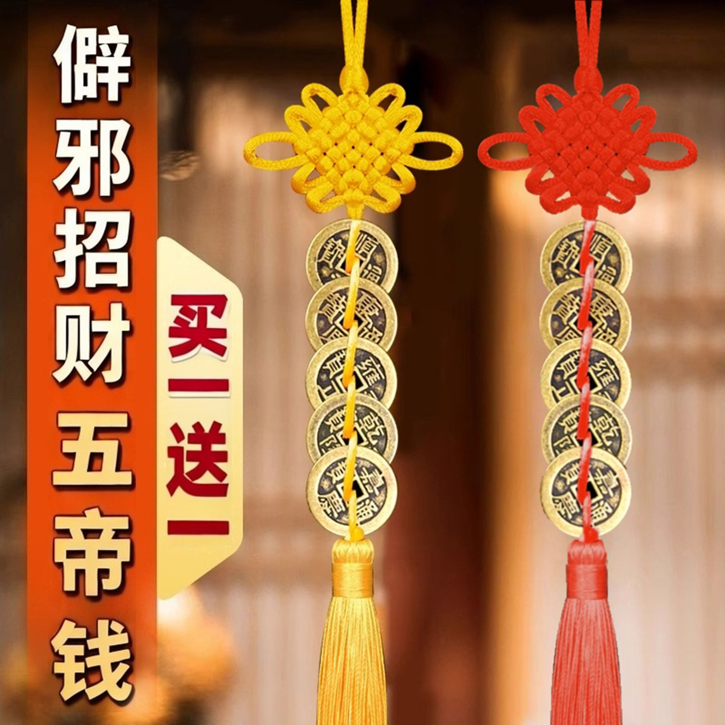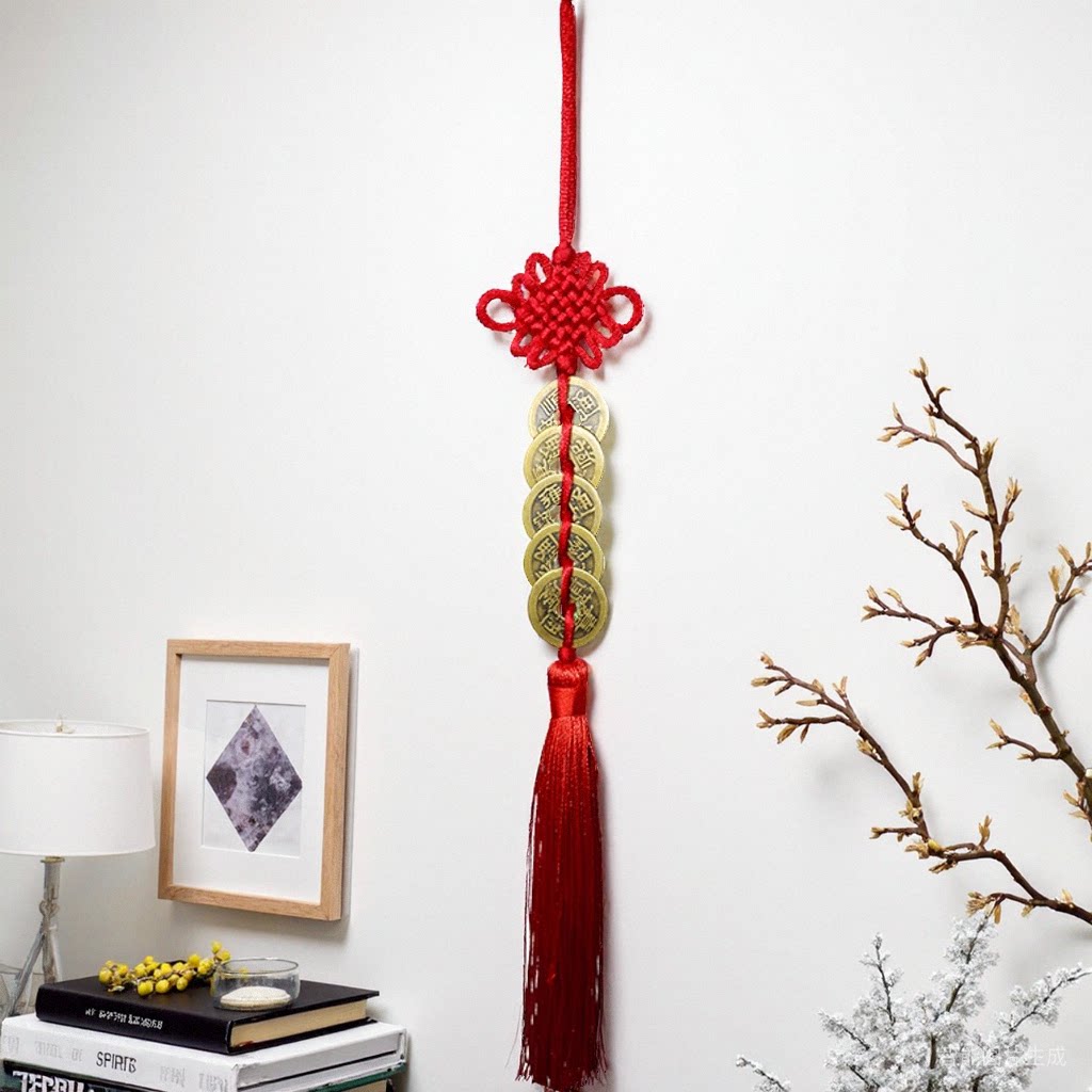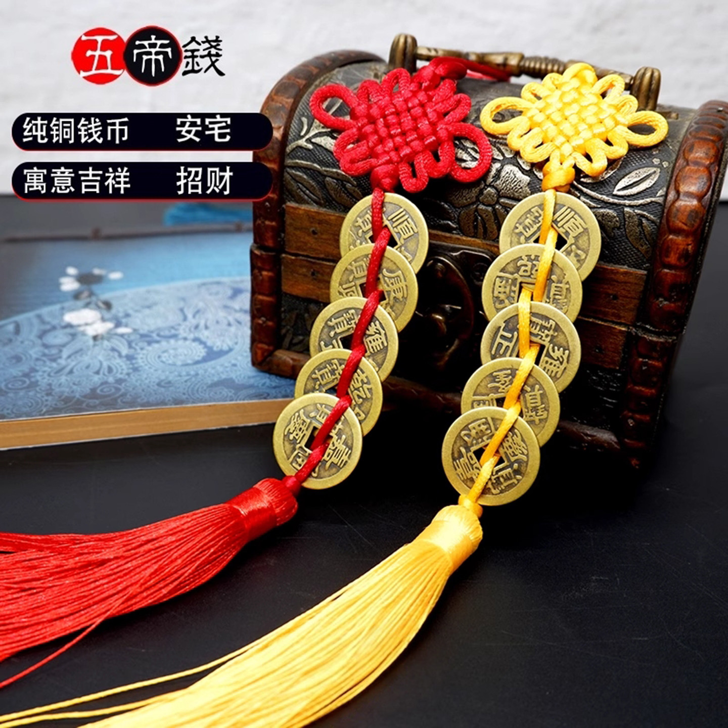 仿品五帝钱六帝钱挂件招财纯黄铜化门对门对窗横梁铜钱串卧室大门