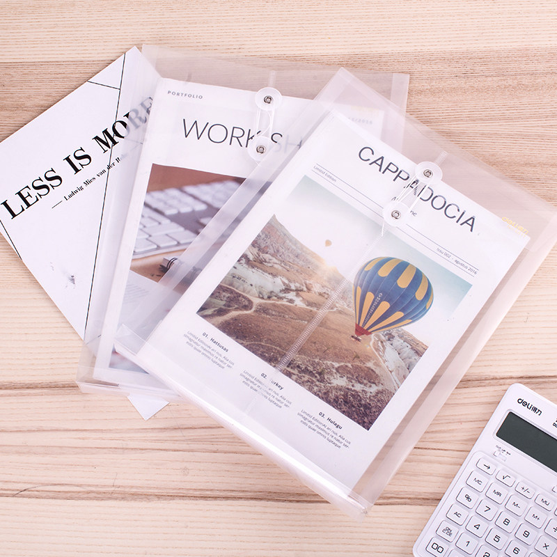 得力透明A4档案袋缠绳防水塑料试卷文件袋资料票据收纳保护袋