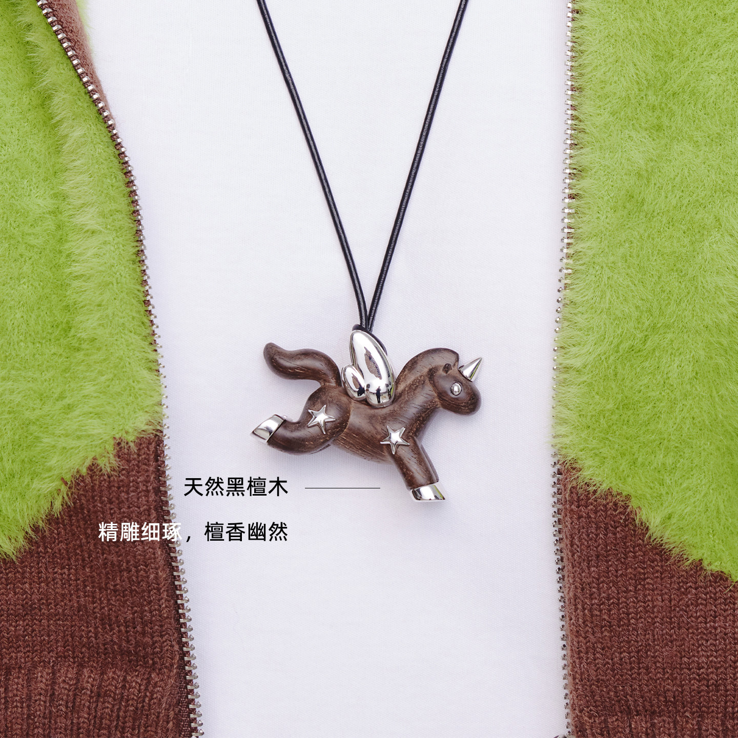 FWISH飞未夕 实木小马超纤皮绳项链节日礼物设计师简约款新品马年