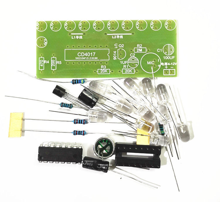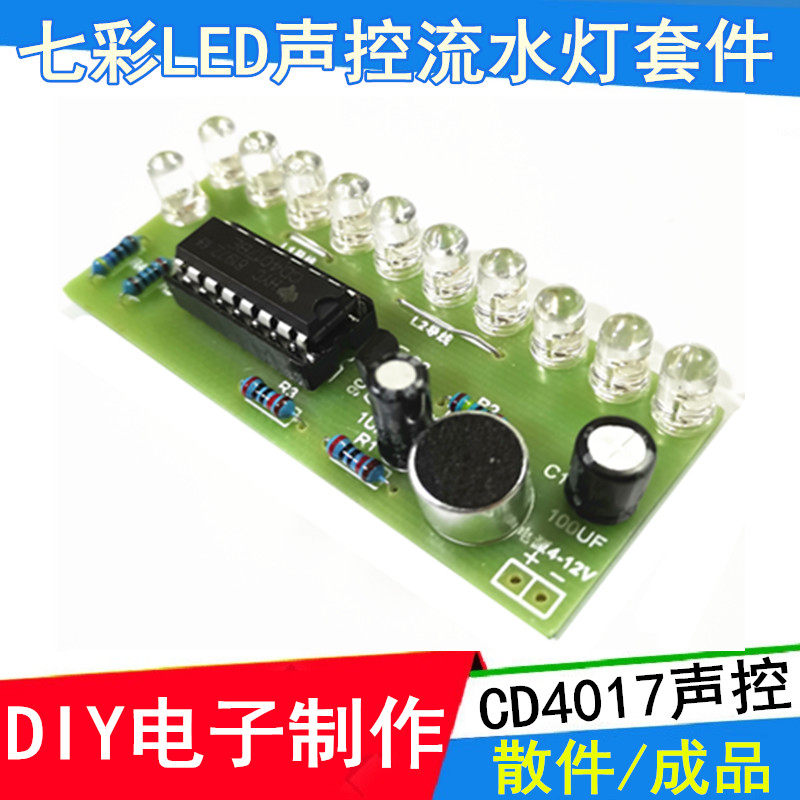 声控流水灯套 七彩灯流水控制器套件 CD4017声控 DIY电子制作套件