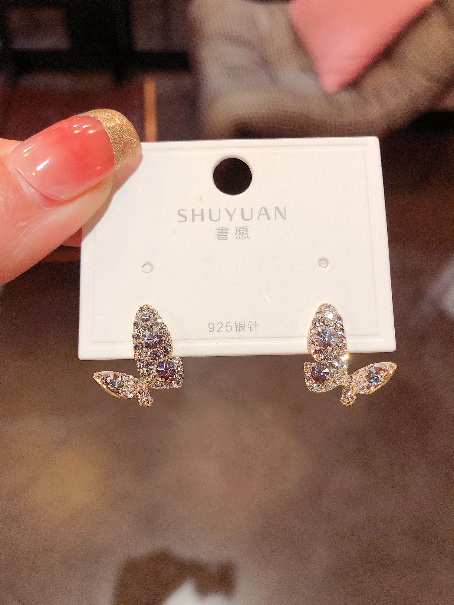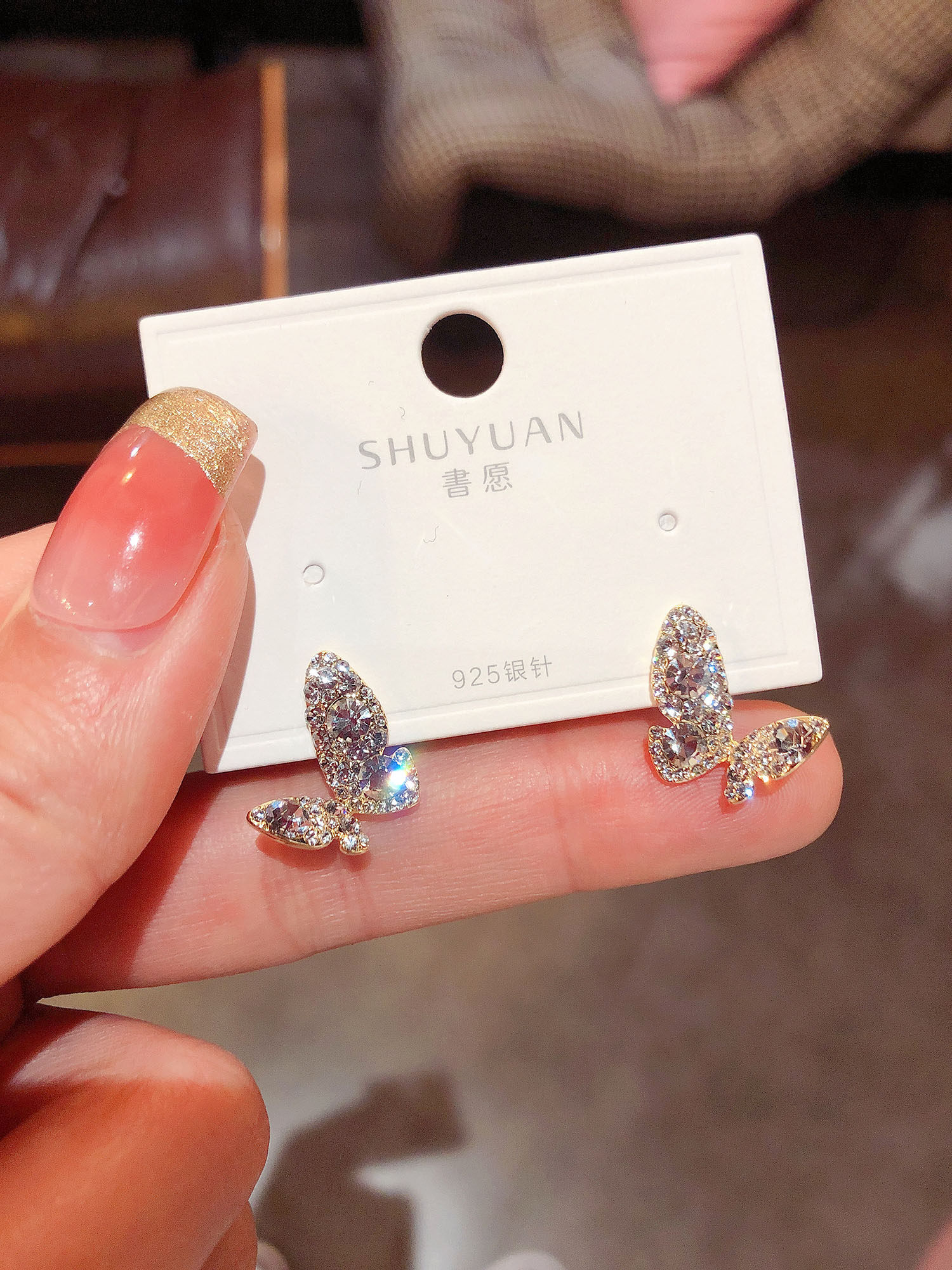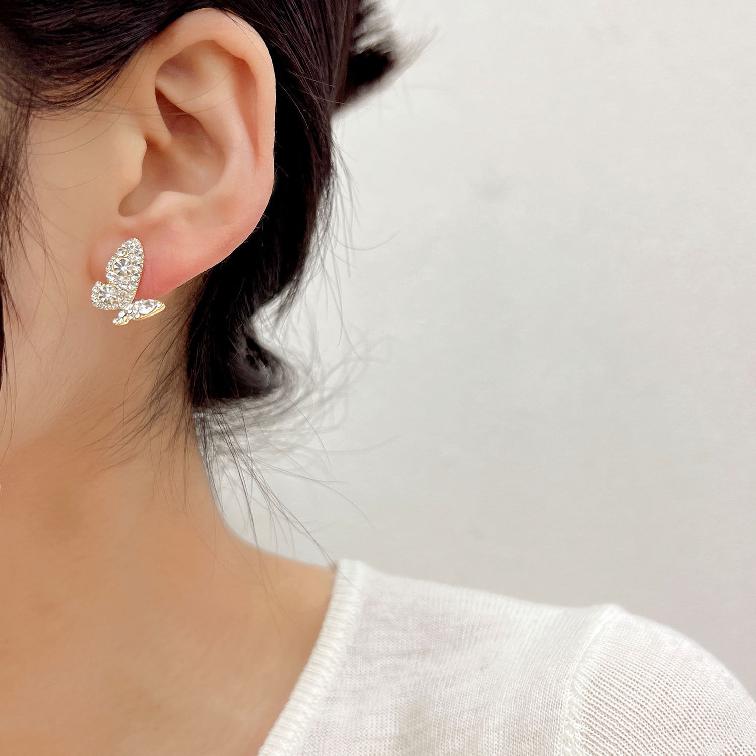 个性小众设计感水钻蝴蝶耳钉2026新款潮韩国气质高级感银针耳环女