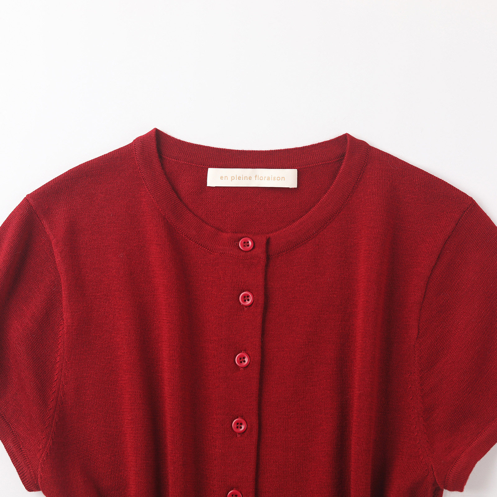 wana try羊毛半袖红色针织开衫2025秋季新款简约百搭显瘦女款上衣