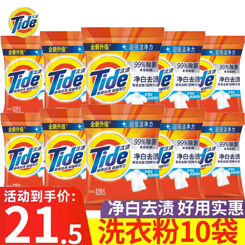 汰渍洗衣粉218g*10小包装无磷家用批发家庭装整批整箱香味持久