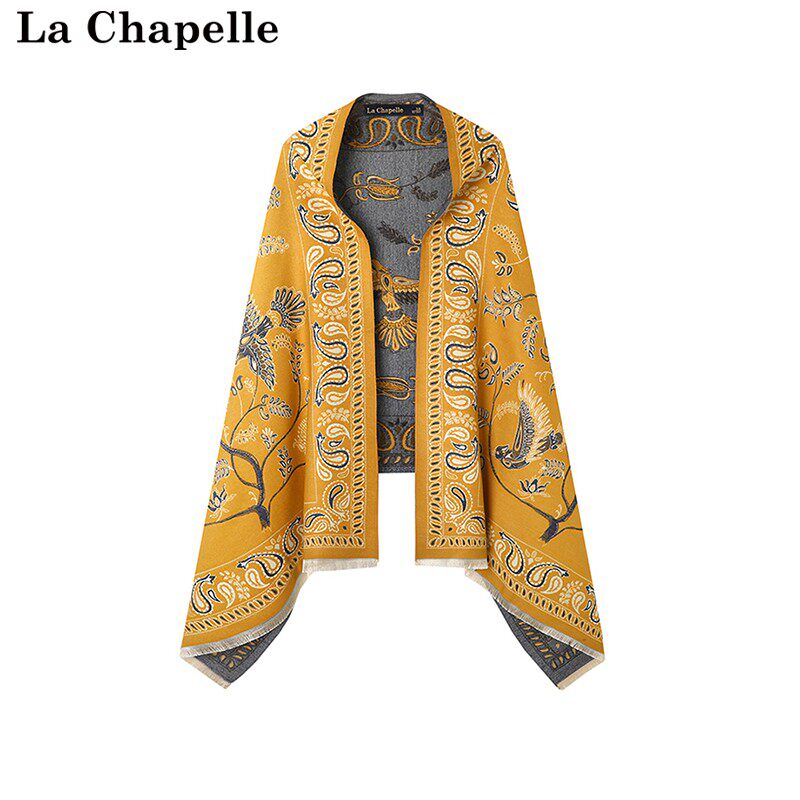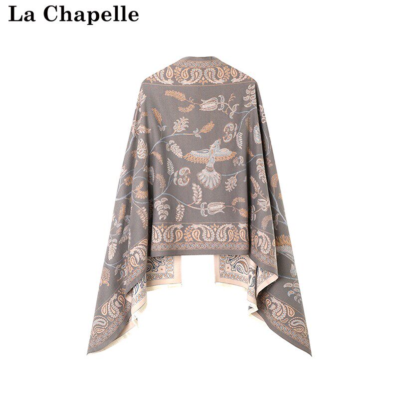 拉夏贝尔/La Chapelle秋季新款保暖披风旅游舒适针织披肩女士围巾