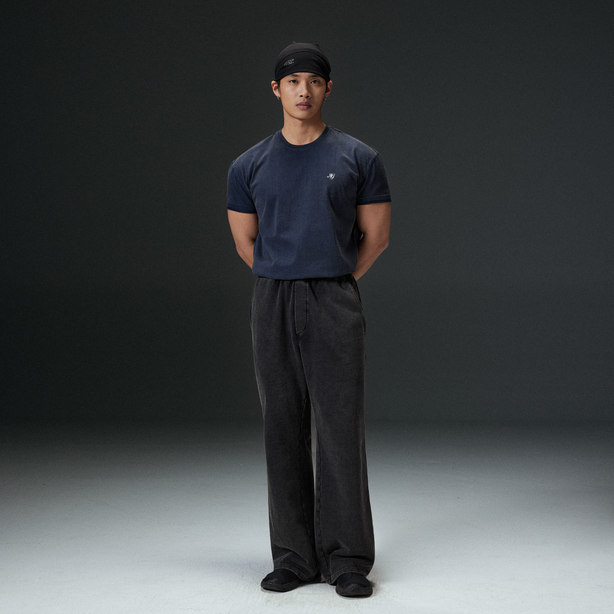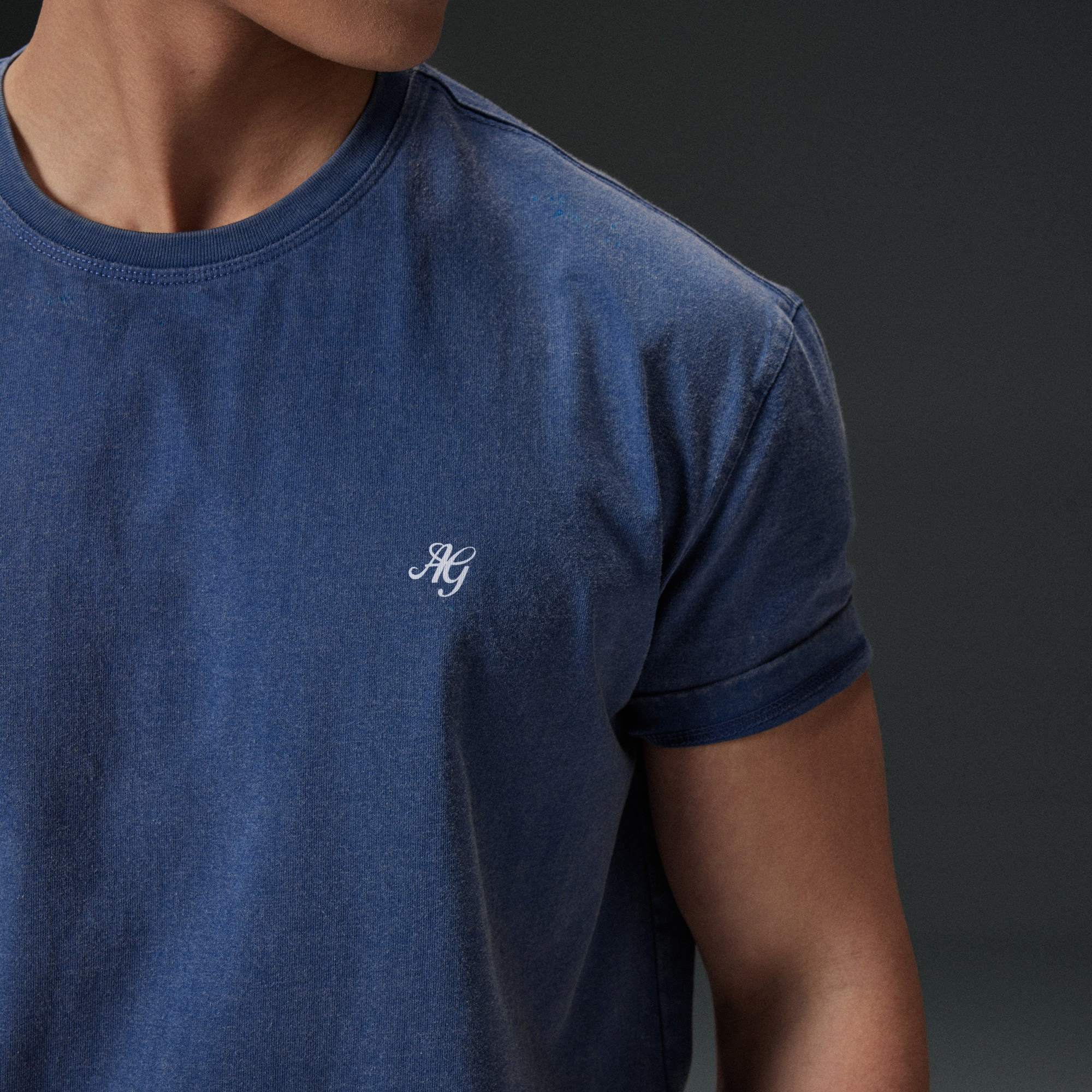 AFTERGLOW春夏水洗做旧正肩收袖口T恤 炒色复古修身基础纯色T恤