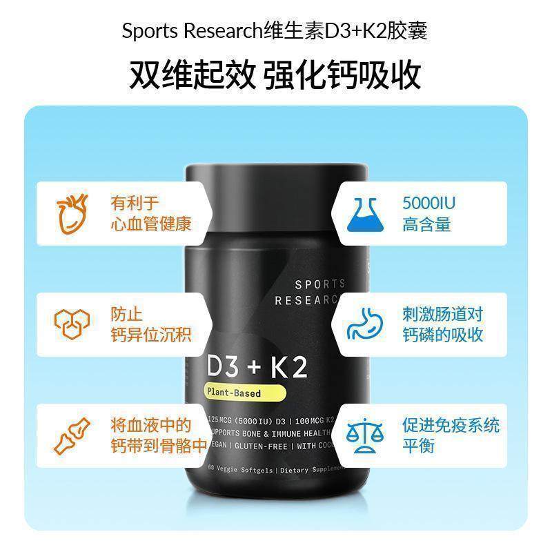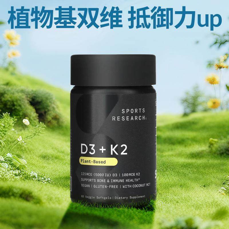 SportsResearch维生素D3+K2双效协同强骨补钙机体抵抗健康