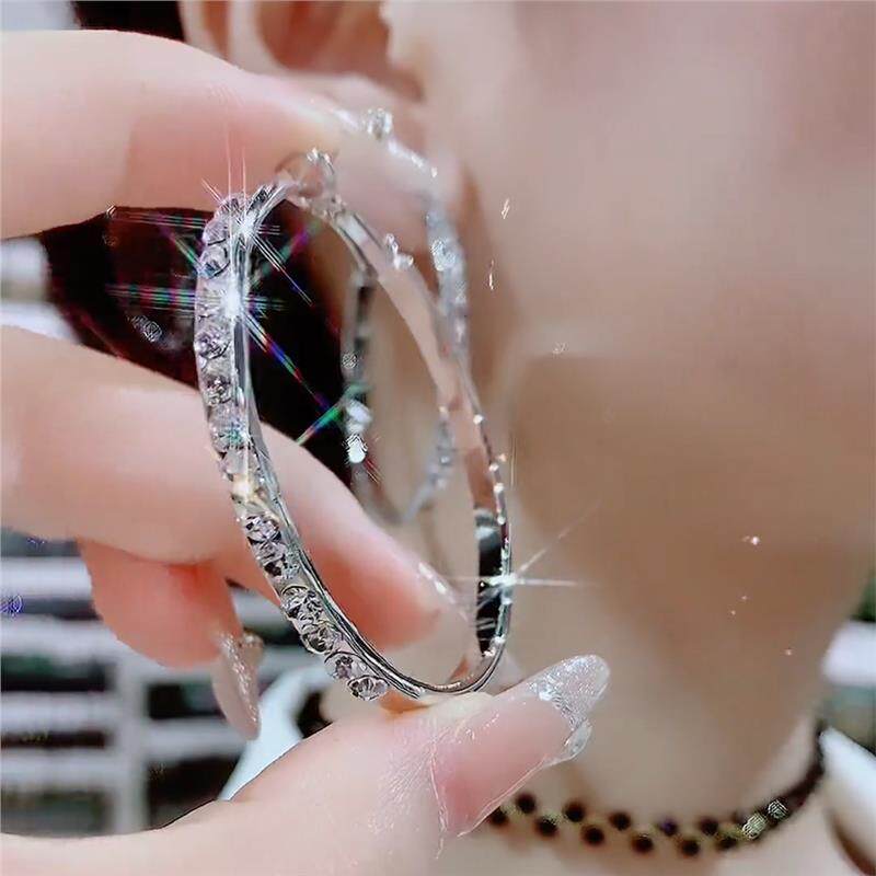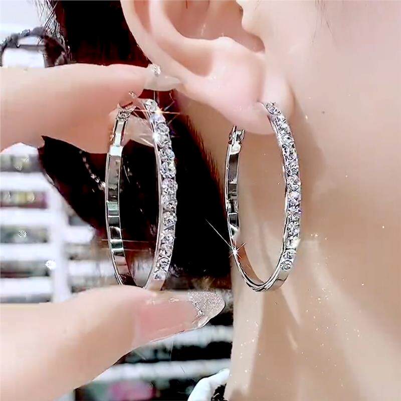 正品9999纯银针耳环高档夸张设计超闪钻大圈圈时尚女高级感防过敏