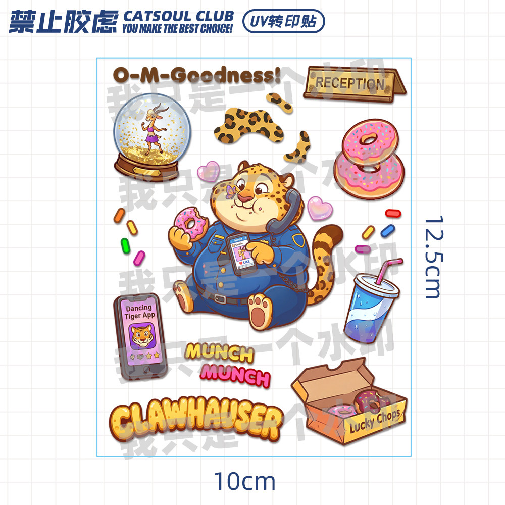 疯狂动物城动物方城市胖豹子警官卡通装饰UV转印贴防水防晒水晶标