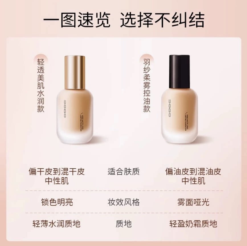 UODO优沃朵粉底液 不卡粉遮瑕粉霜水润控油干皮粉底 蹭不掉奶油肌