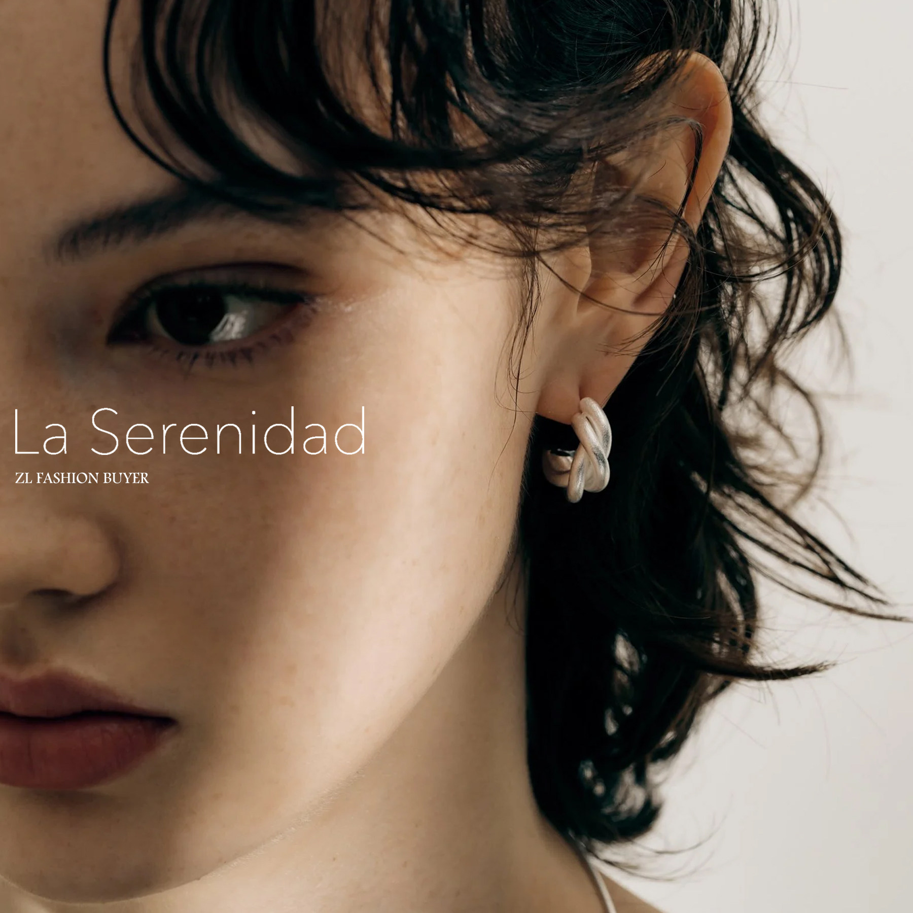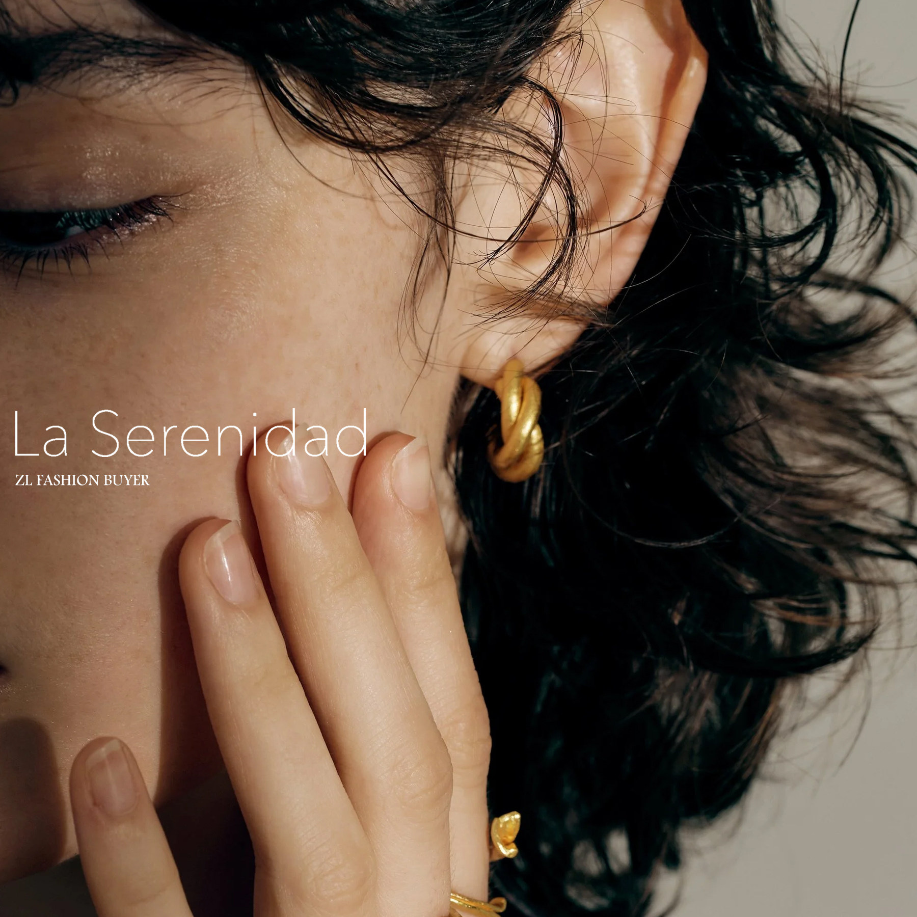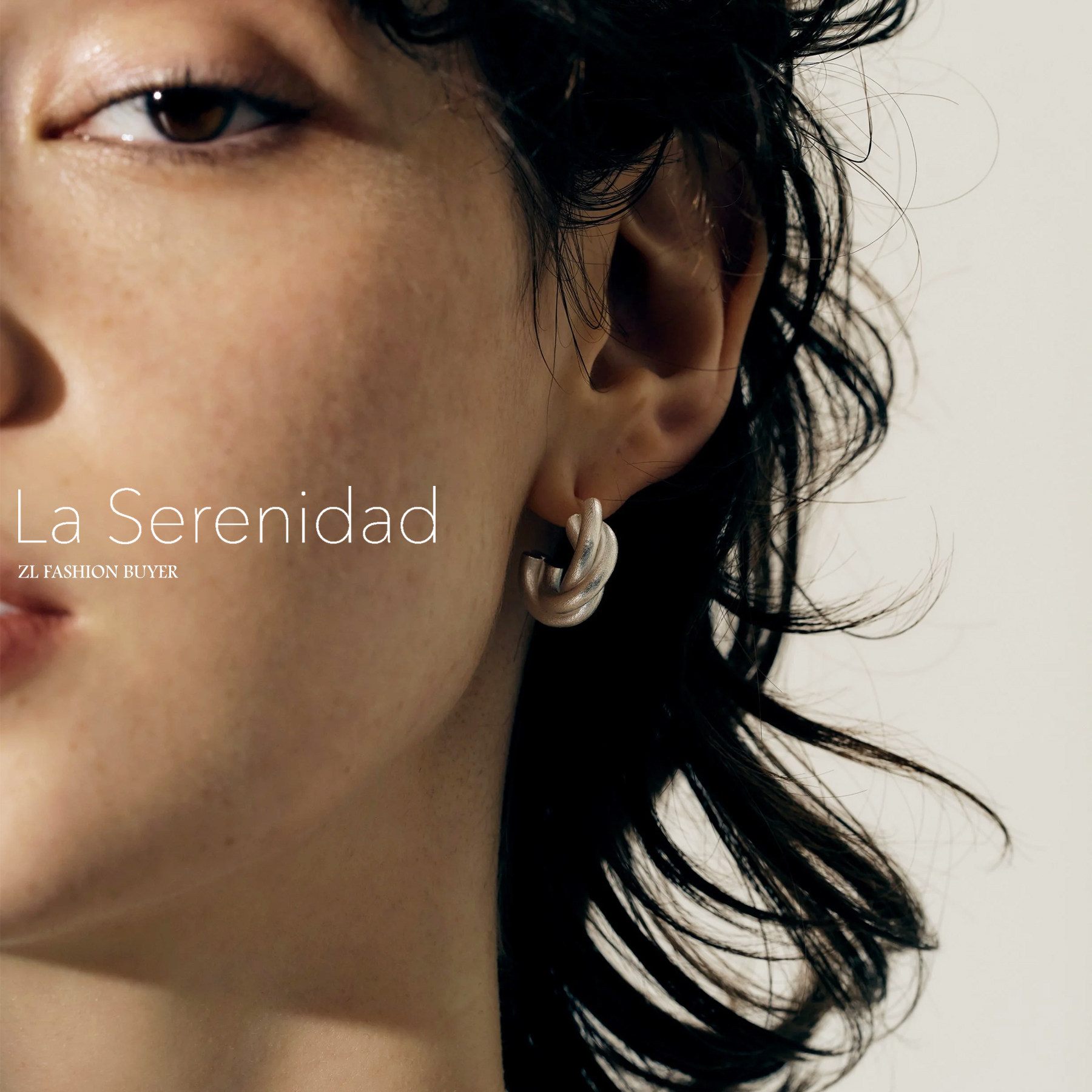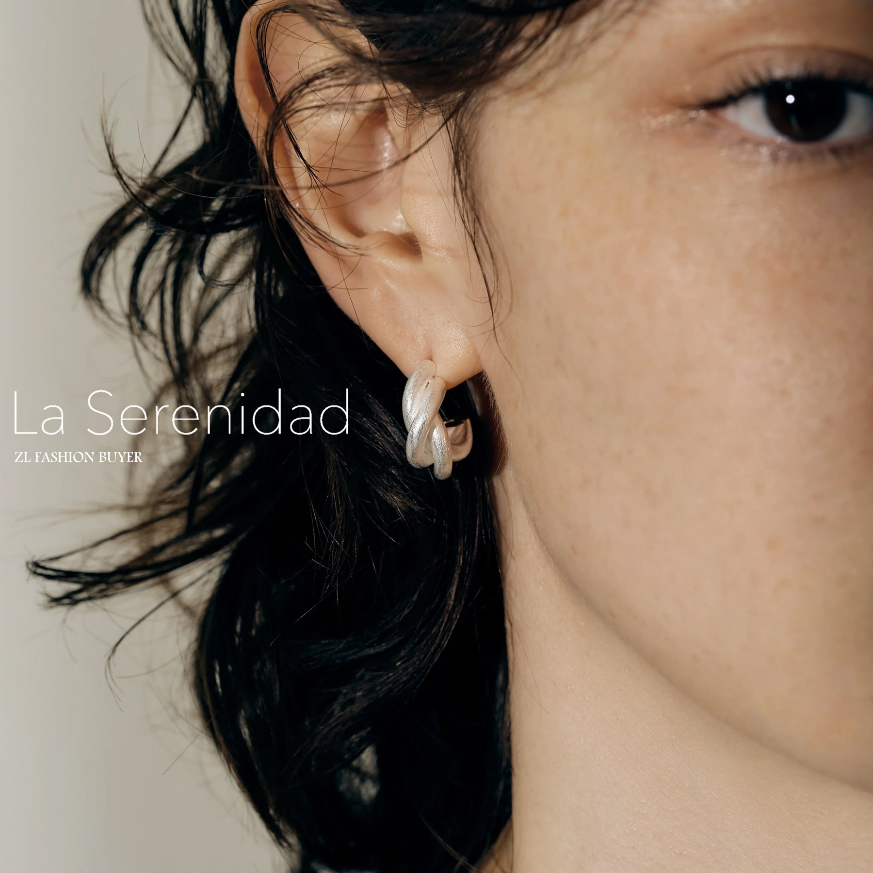 现货La Serenidad线条拧绳蛇藤磨砂雾面肌理高级复古小众耳环耳夹