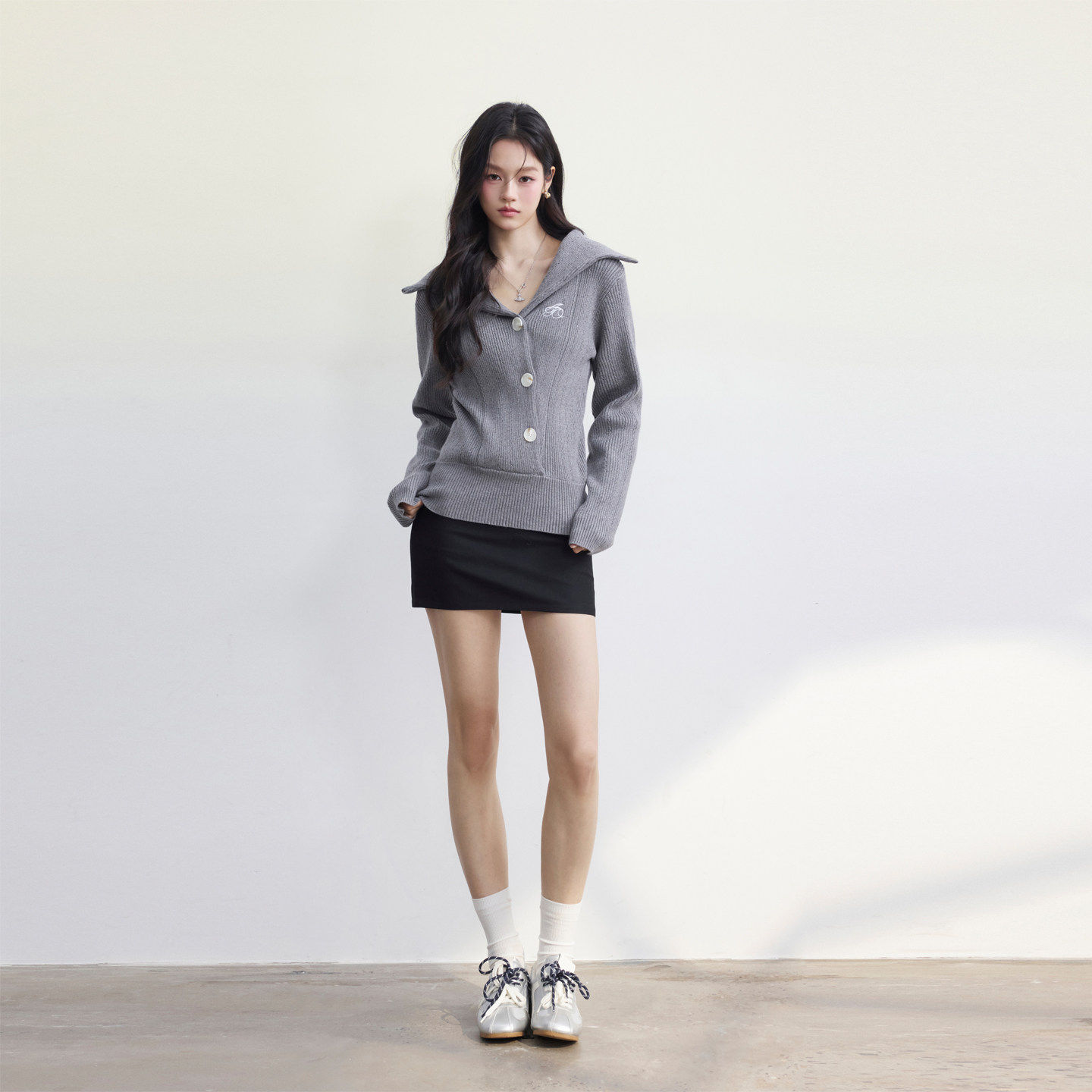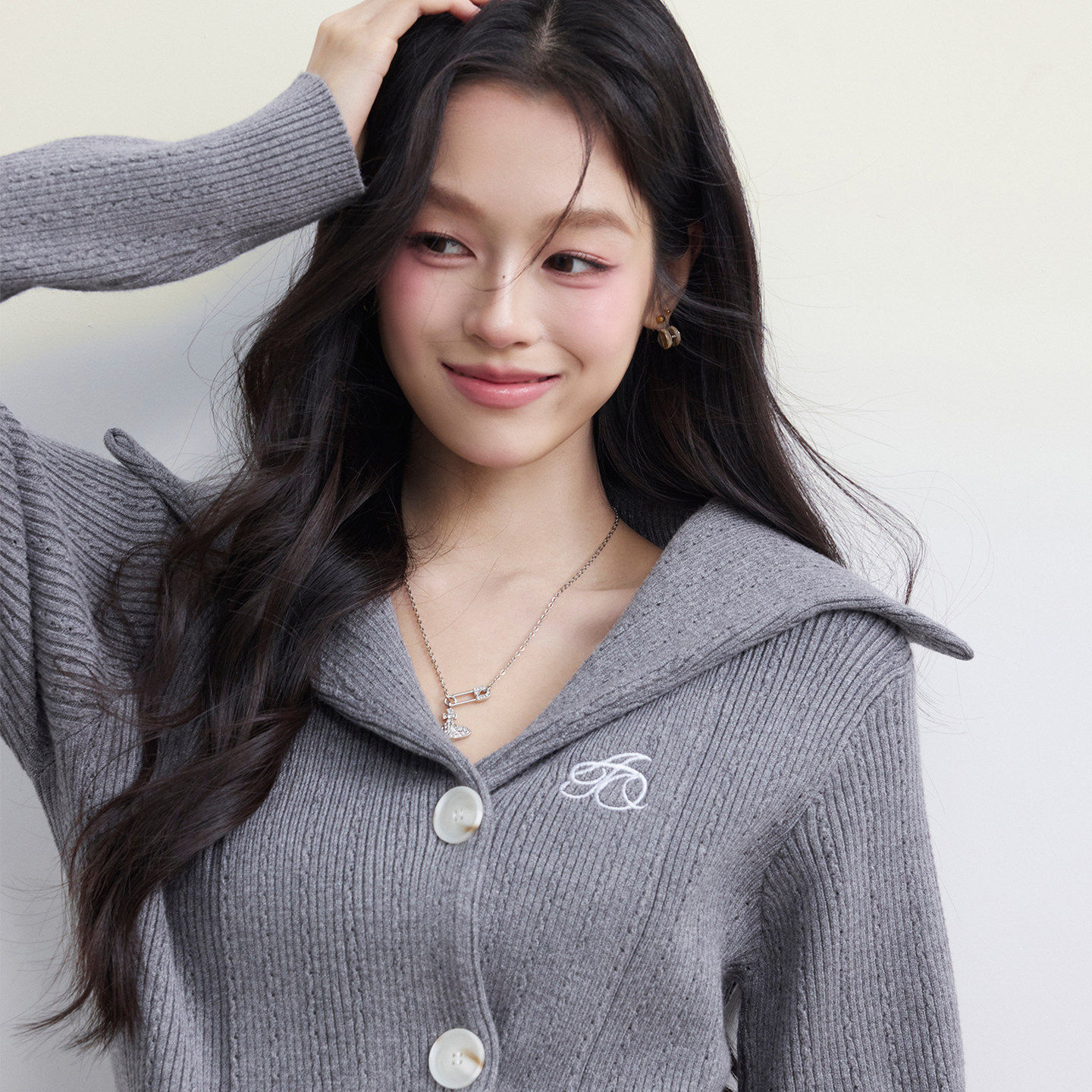ATMOAOSU“Collar柔雅”松弛温柔风翻领针织衫设计感显瘦纽扣毛衣