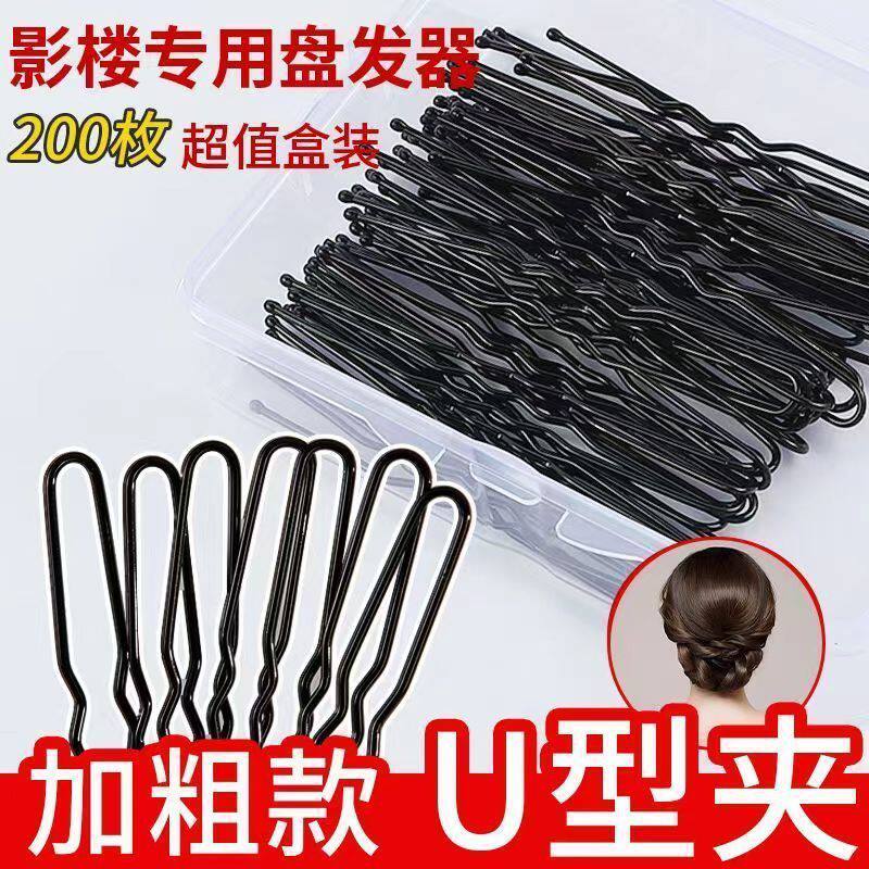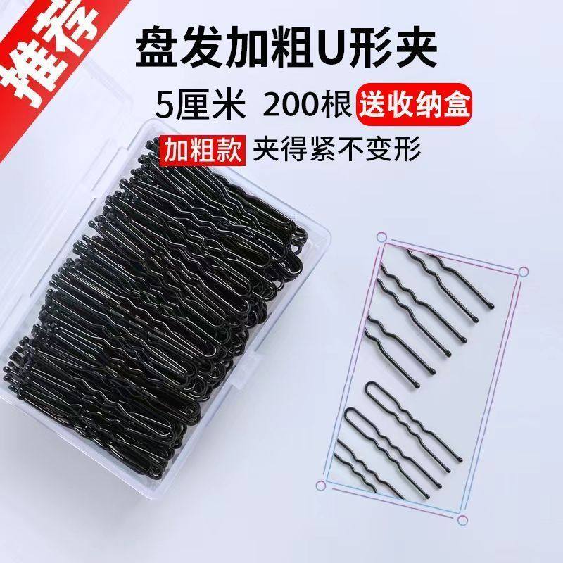 黑色u型夹盘发一字夹插针加粗发夹丸子头固定u形卡子发饰头饰
