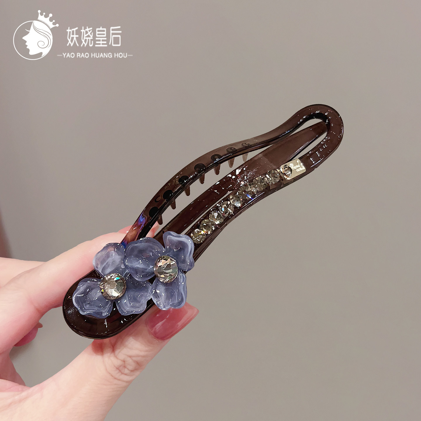 复古醋酸花朵懒人一字夹高级感花朵珍珠抓夹后脑勺盘发夹气质发饰
