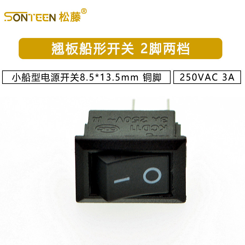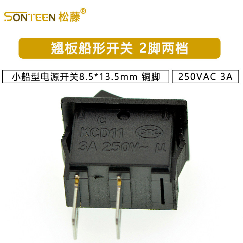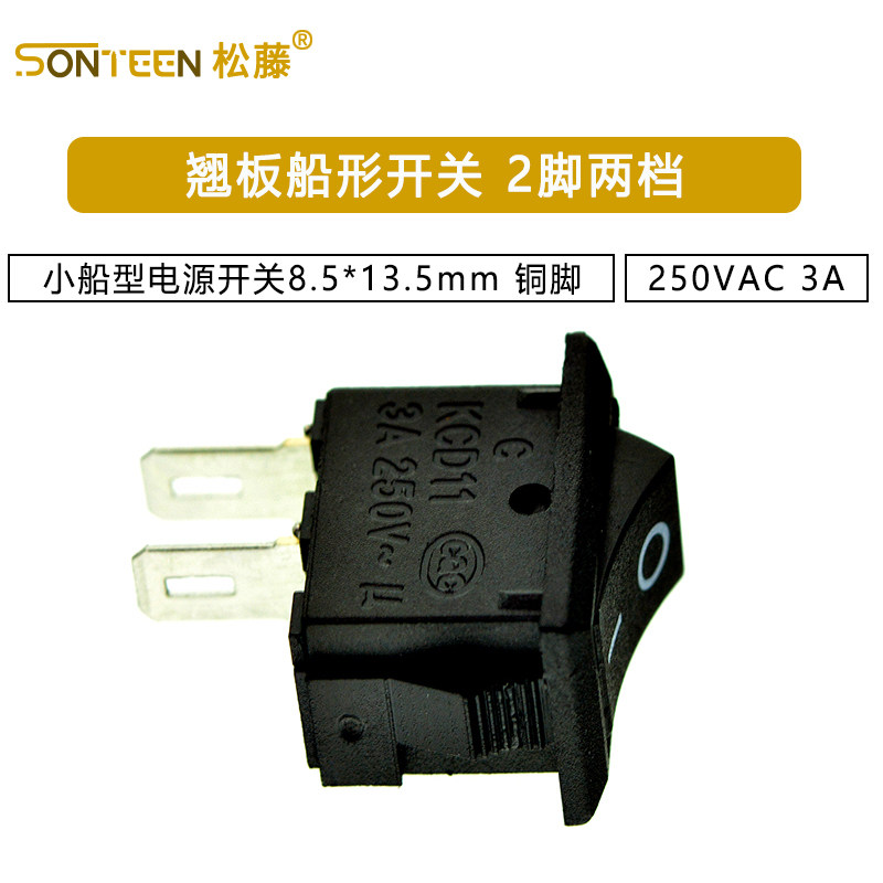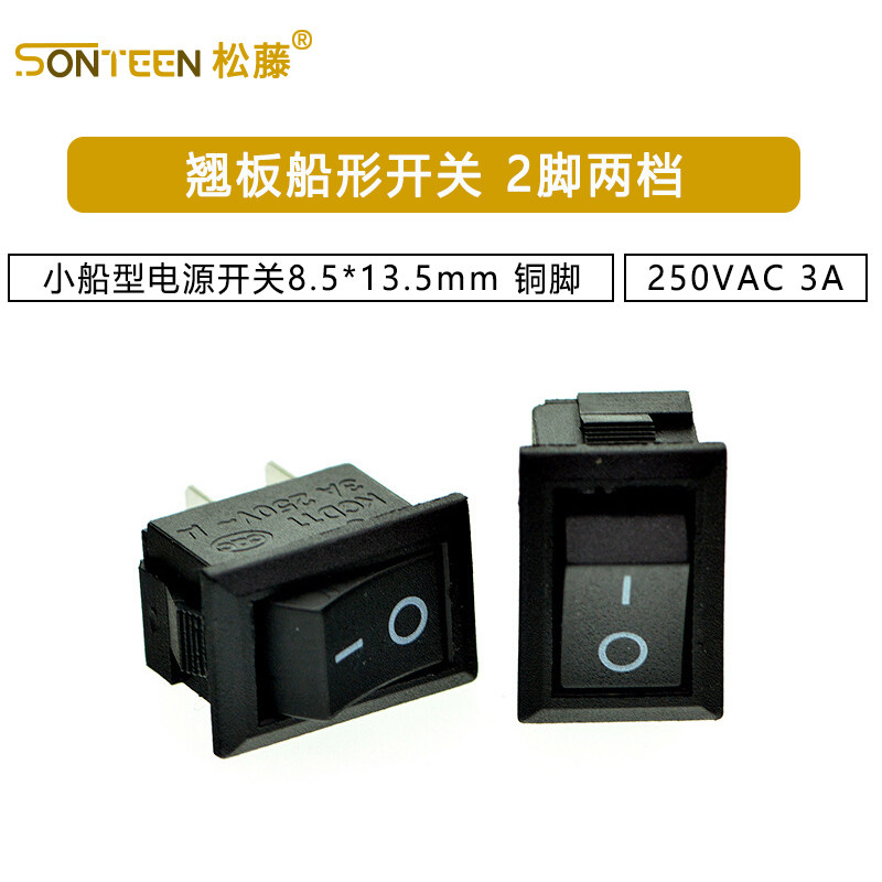 小船型开关 翘板船形电源开关按钮 8.5*13.5mm 2脚两档