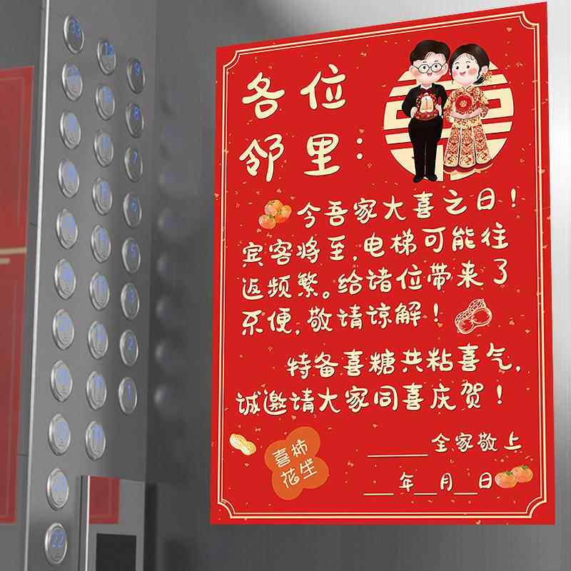 直销新款结婚电梯告示喜字贴婚礼用品大全喜事囍字墙面装饰布置小