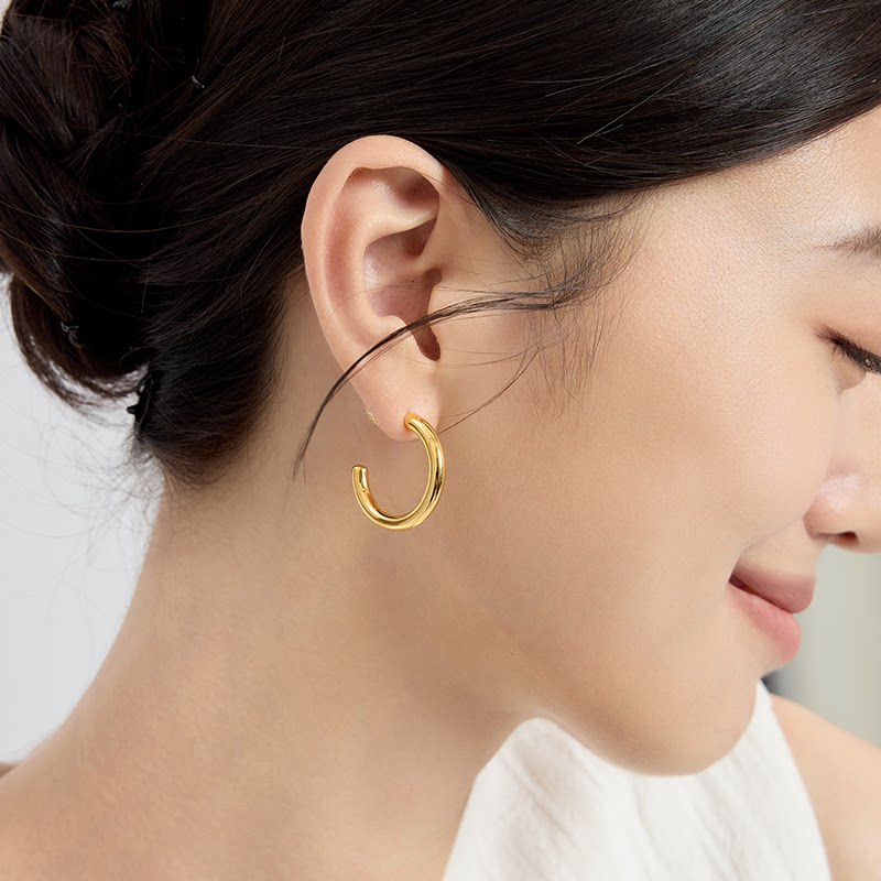 OUBIYABI欧比雅比都市波纹耳钉大中小号耳圈时尚通勤耳饰女生
