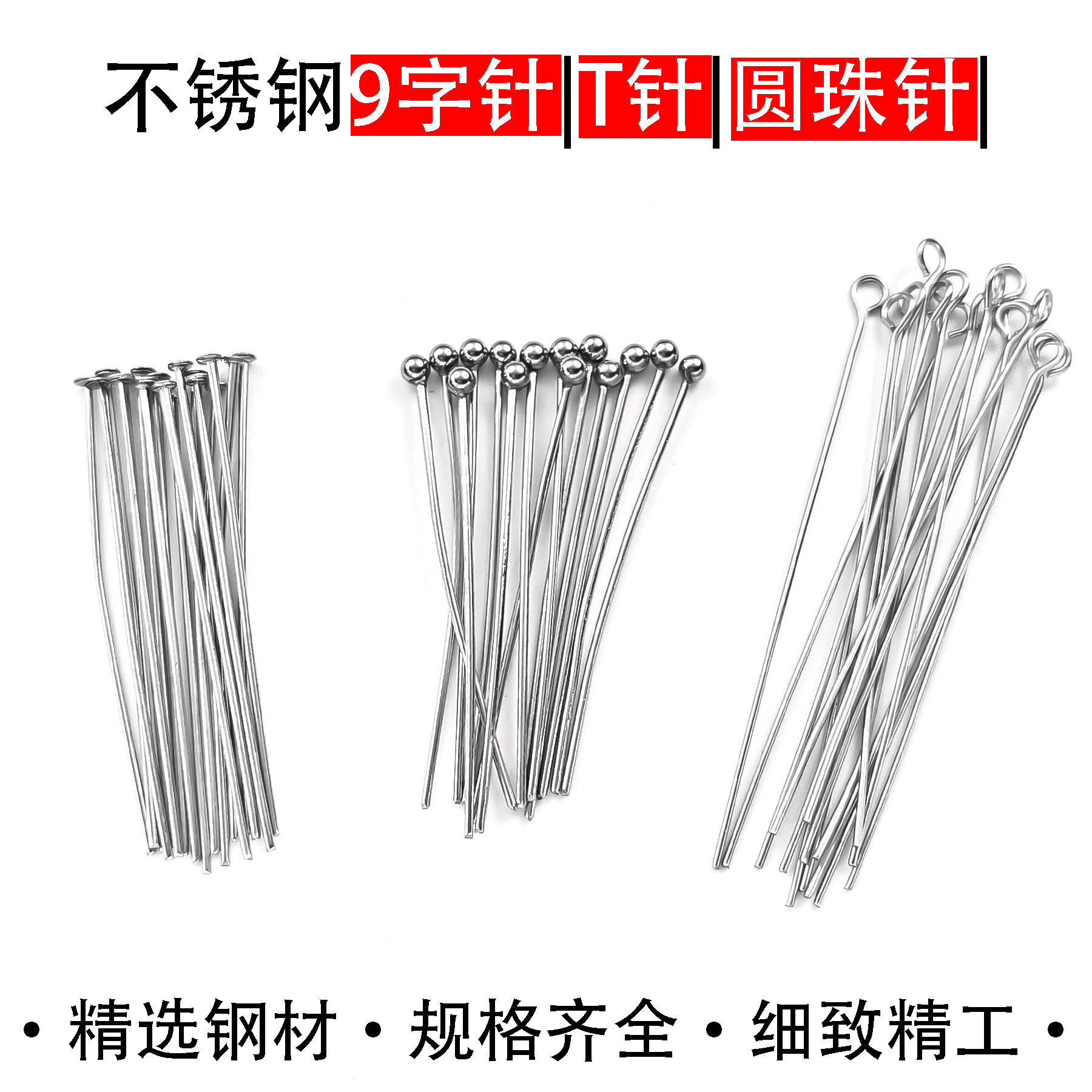 钢本饰品 不褪色镀金9字针不锈钢圆珠针T针DIY串珠针保色炉内金