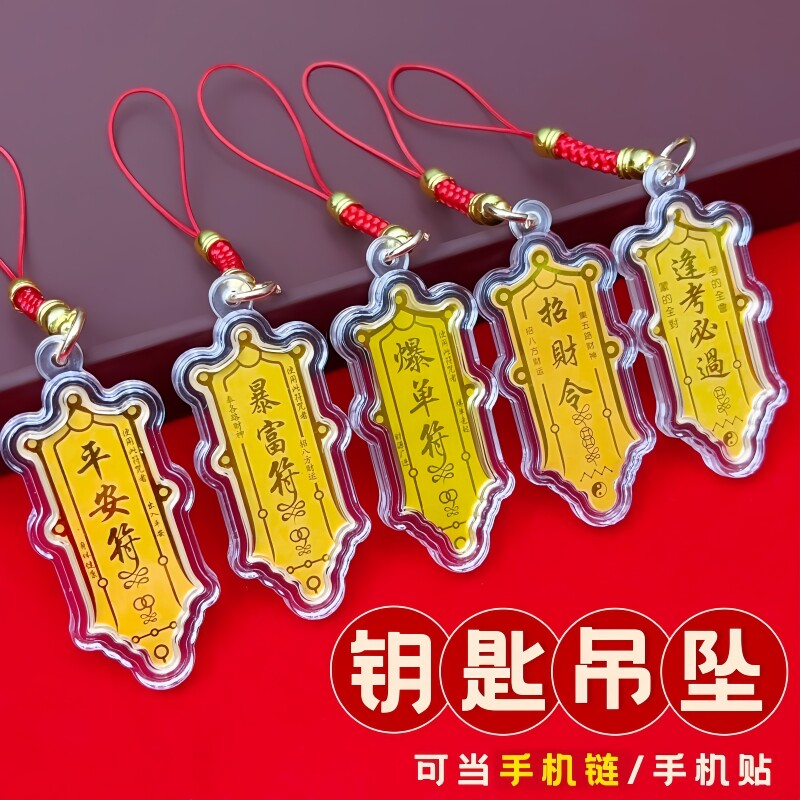招财令手机链吊坠金箔爆单符暴富符平安符汽车钥匙扣挂件护身符手机贴U盘包包挂绳节日年会活动礼品